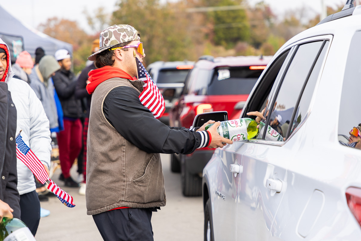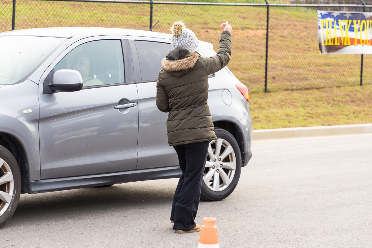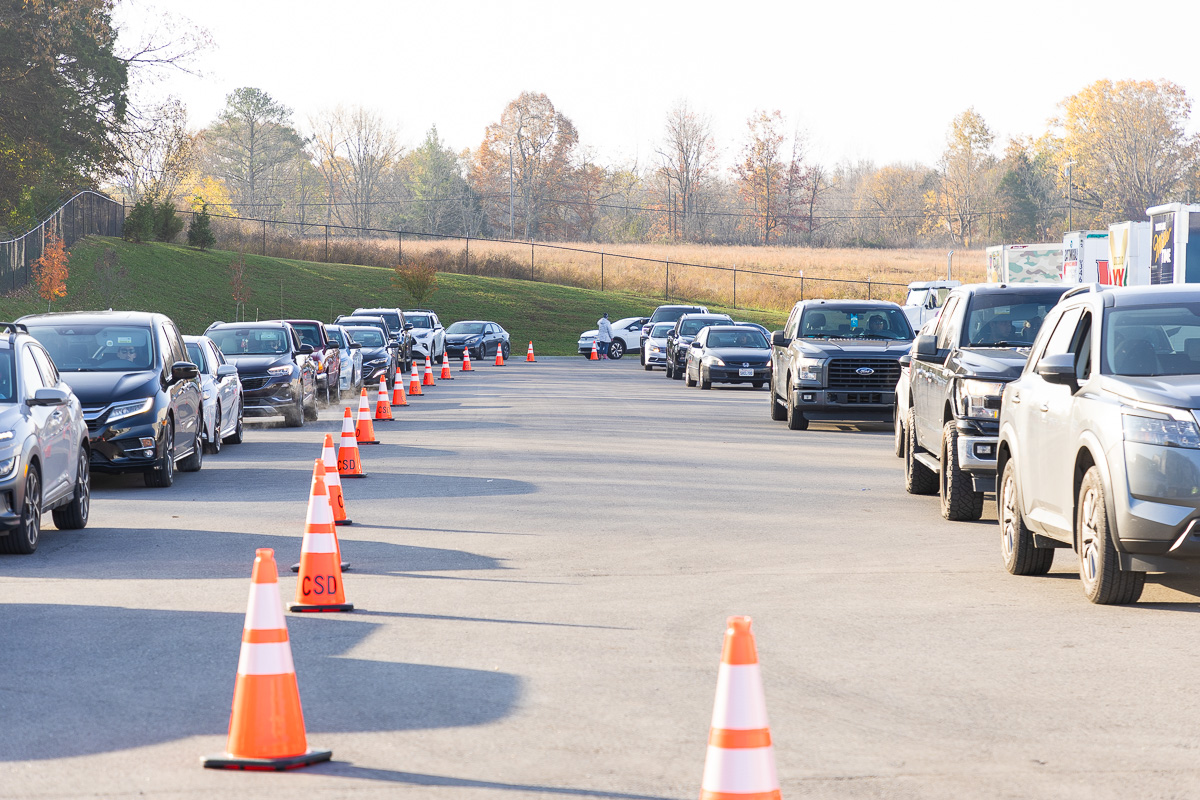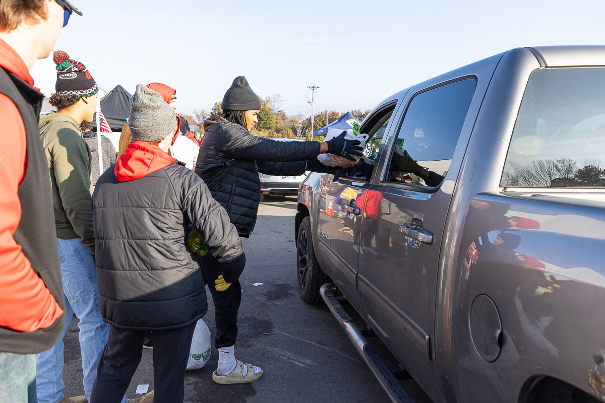 The event, which started at 8 a.m., had a steady line of vehicles of active-duty service members, veterans and their families. Volunteers included members of Austin Peay State University’s baseball and softball teams, as well as on-air personalities from Beaver 100.3 and Q108.