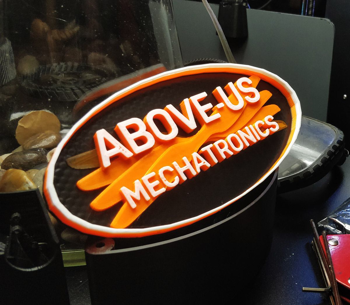 Above-Us creates 3D name tags, window signs, wall signs, plaques, multirotor parts and personalized desk organizers for locally owned businesses.