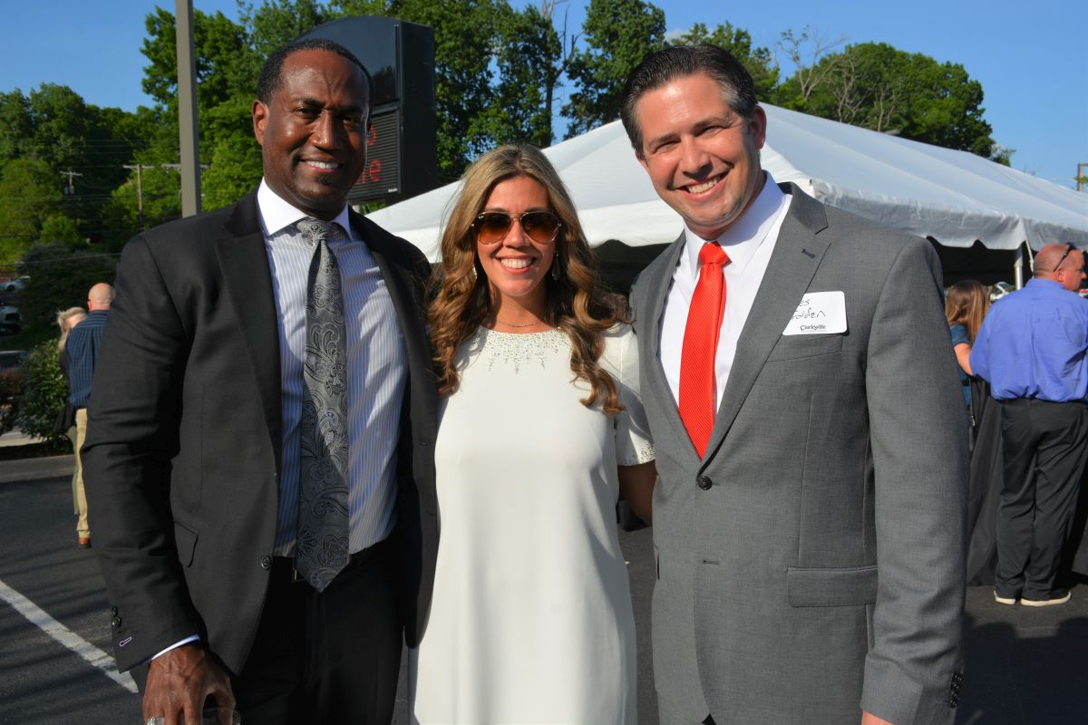 L to R, Jimmy Terry Jr., Sara Golden and Wes Golden at the Clarksville Area Chamber of Commerce Business After Hours hosted by Altra Federal Credit Union, Thur. May 20 2021. (Lee Erwin)