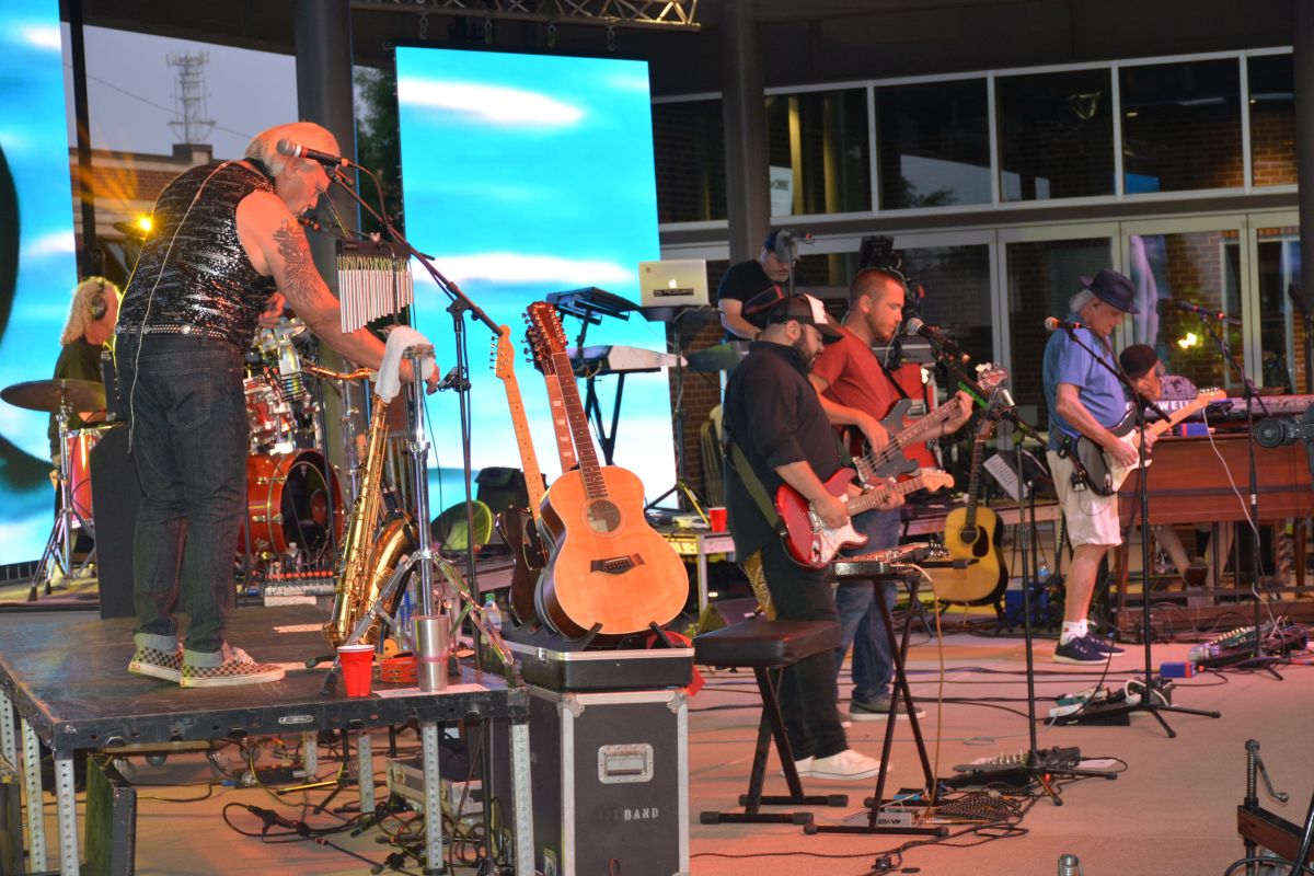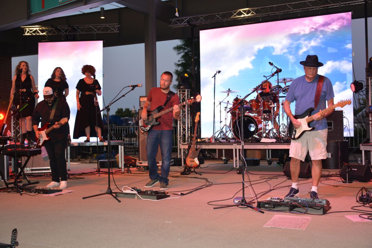 Downtown @ Sundown featured the Pink Floyd Tribute band, American Floyd, who rocked the Downtown Commons with music and a light show Fri, June 18 2021 (Lee Erwin).