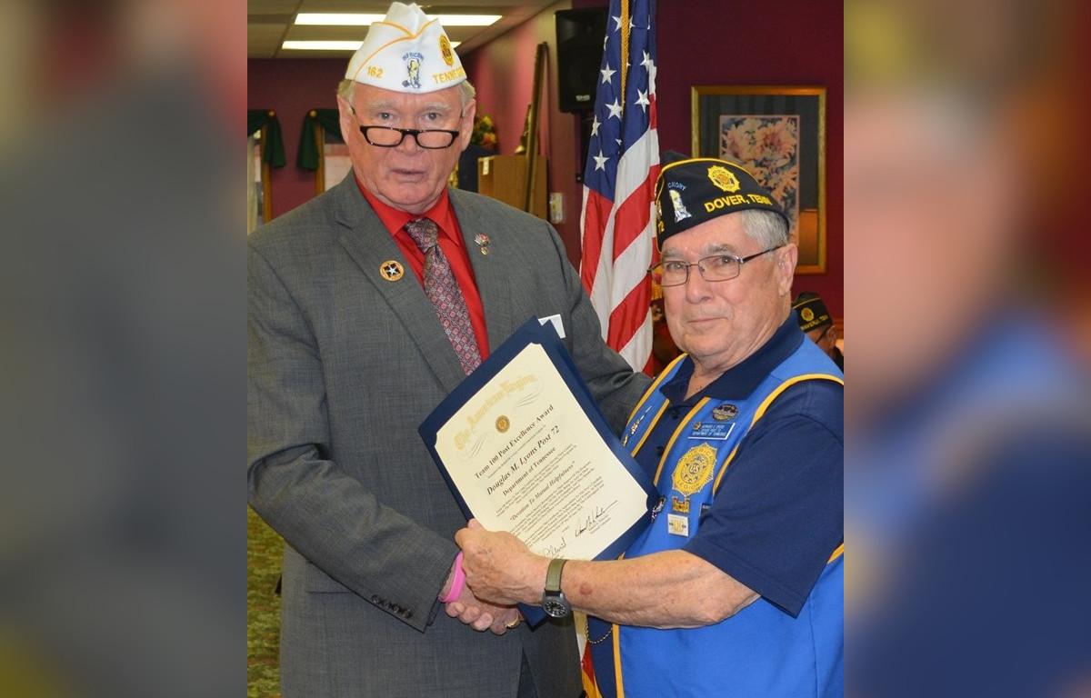 Douglas M. Lyons, Dover Post 72 received the Prestigious National Commanders Post Excellence Award at the Eighth District Commanders Tour in Scotts Hill, Tenn. Out of more than 12,000 posts, only 131 were selected for recognition. Post 72 is one of three to receive the award in Tennessee this year.