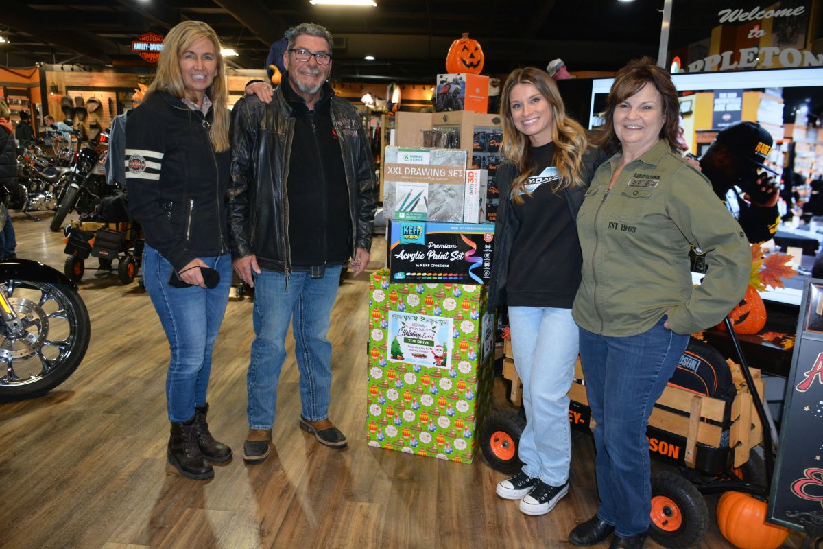 Appleton staff beside a toy box at the Appleton Harley- Davidson 22nd annual Eagle Toy Run on Nov. 12, 2022. (Lee Erwin)