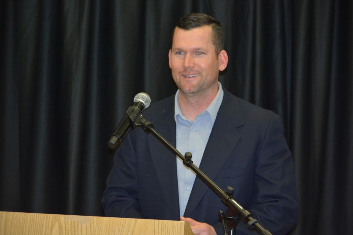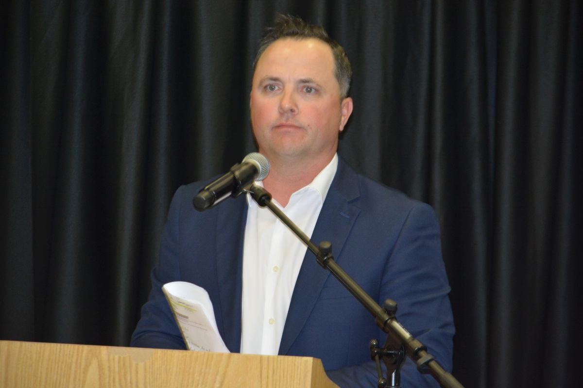 APSU Director of Athletics Gerald Harrison speaking at the Governors’ First Pitch Banquet at the Morgan University Center on Jan. 28, 2023. (Lee Erwin)