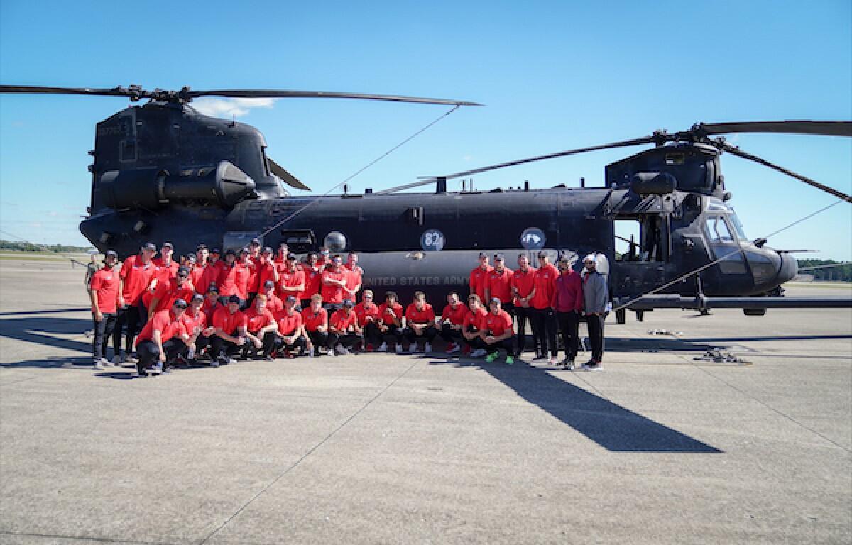 The baseball team participated in a simulated pre-jump sequence on a mockup C-130, learning how to properly communicate, position themselves and execute the proper airborne techniques, before, during, and after a jump. Then Sgt. 1st Class Reed Knutson, the regiment’s Public Affairs Noncommissioned Officer, gave an exclusive and unplugged hands-on tour of the several flight lines on the 160th compound.