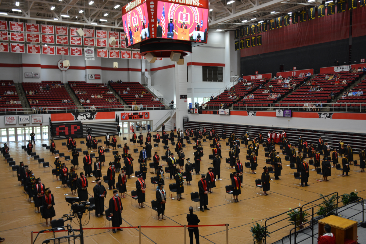 APSU held 5 ceremonies with students spaced out and in masks to ensure a safe and healthy celebration of the class of 2020.