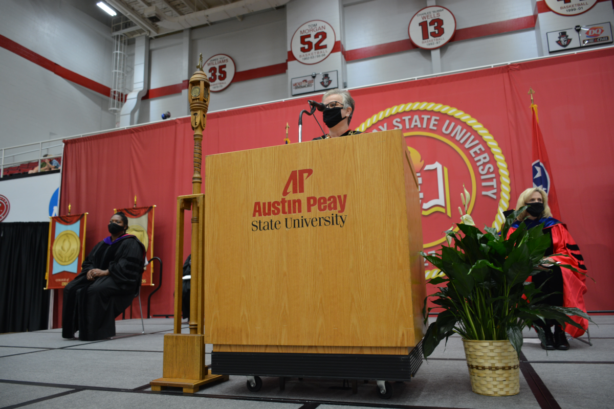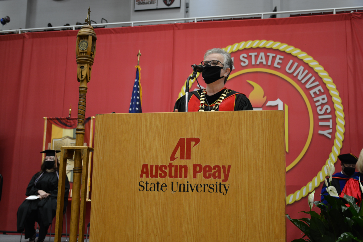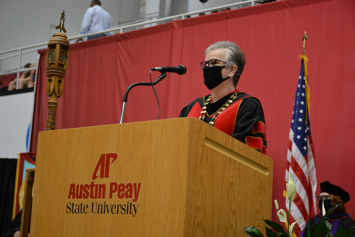 APSU President Alisa White presided over her last commencement ceremony, thanking students, the families that have supported them and the faculty that were unable to attend.