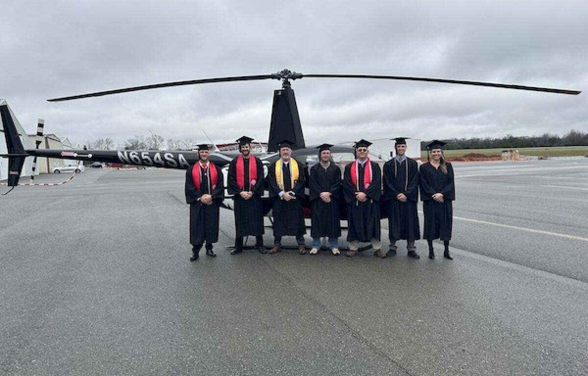 CLARKSVILLE, TN – Seven Austin Peay State University students made history on Friday, Dec. 9, when they became the first graduates of the College of STEM’s aviation science program. The University launched the program in 2019, giving APSU the state’s first and only helicopter flight school that awards bachelor’s degrees.