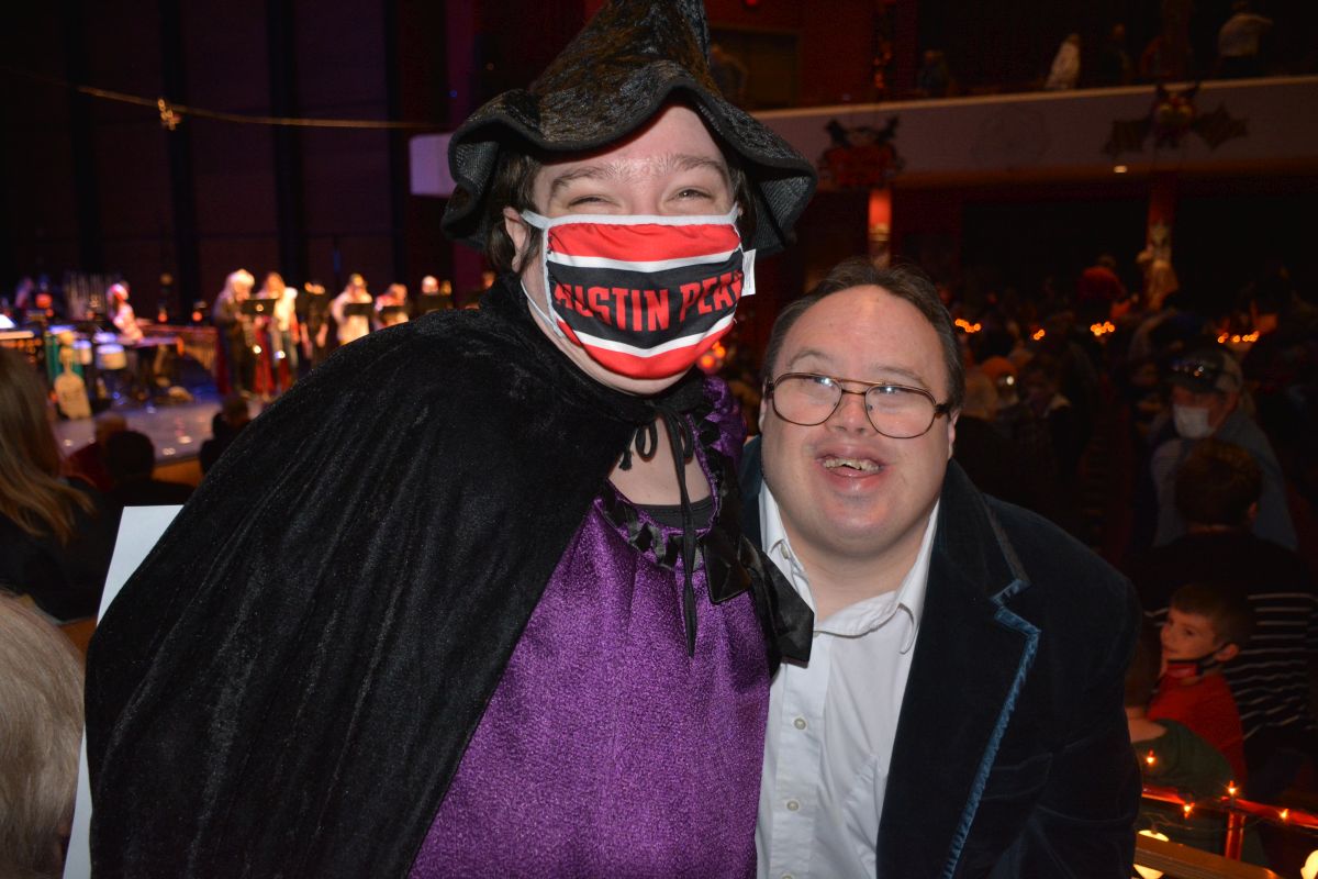 A guest attends the APSU Halloween Percussion Ensemble Concert at Austin Peay’s Music/Mass Communications Building on Oct. 29, 2021. (Lee Erwin)