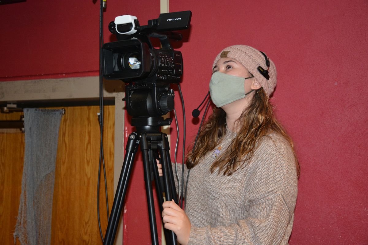 Angela Peterson, a graduate assistant at Austin Peay State University and a broadcast reporter at ClarksvilleNow.com operates a video camera at the APSU Halloween Percussion Ensemble Concert at Austin Peay’s Music/Mass Communications Building on Oct. 29, 2021. (Lee Erwin)