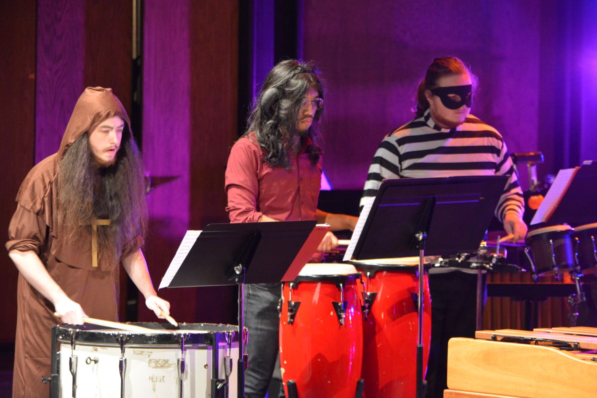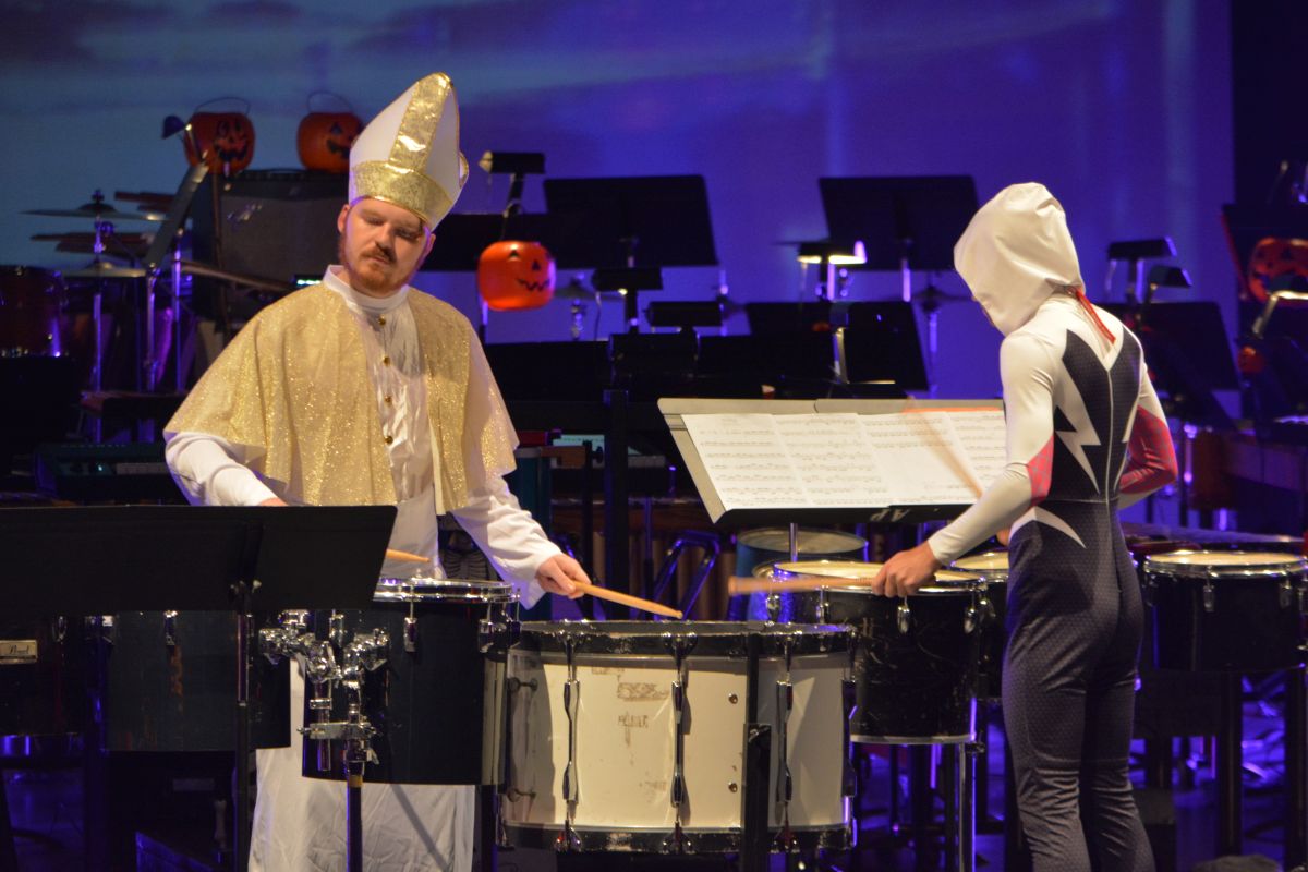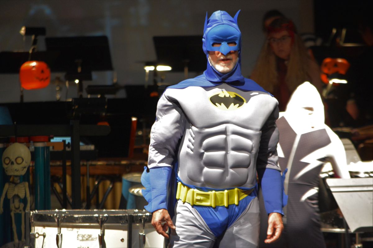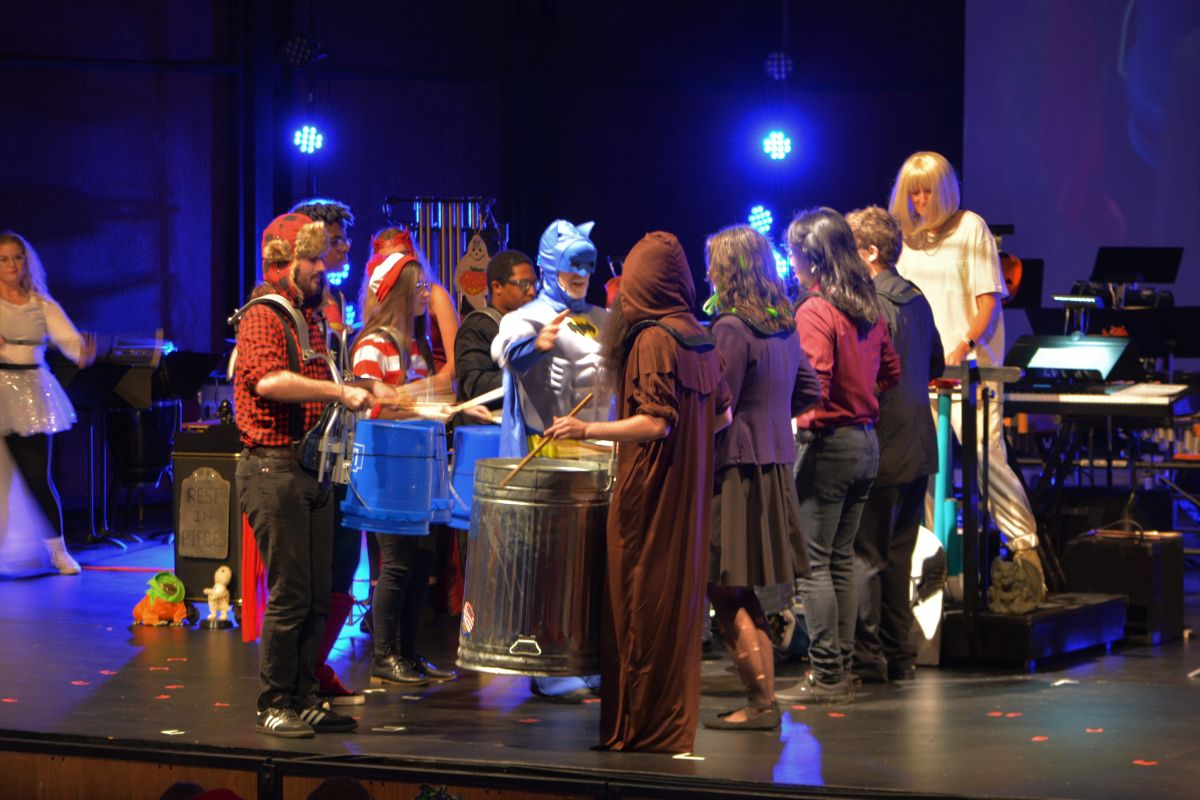 Close to 30 performers took to the George and Sharon Mabry Concert Hall stage filled with musicians led by David Steinquest, Professor of Percussion at APSU, who was dressed as his super-hero of choice, Batman.