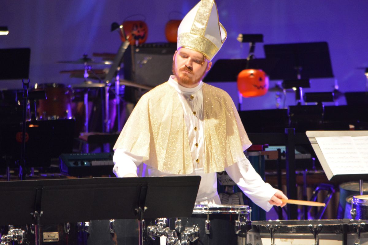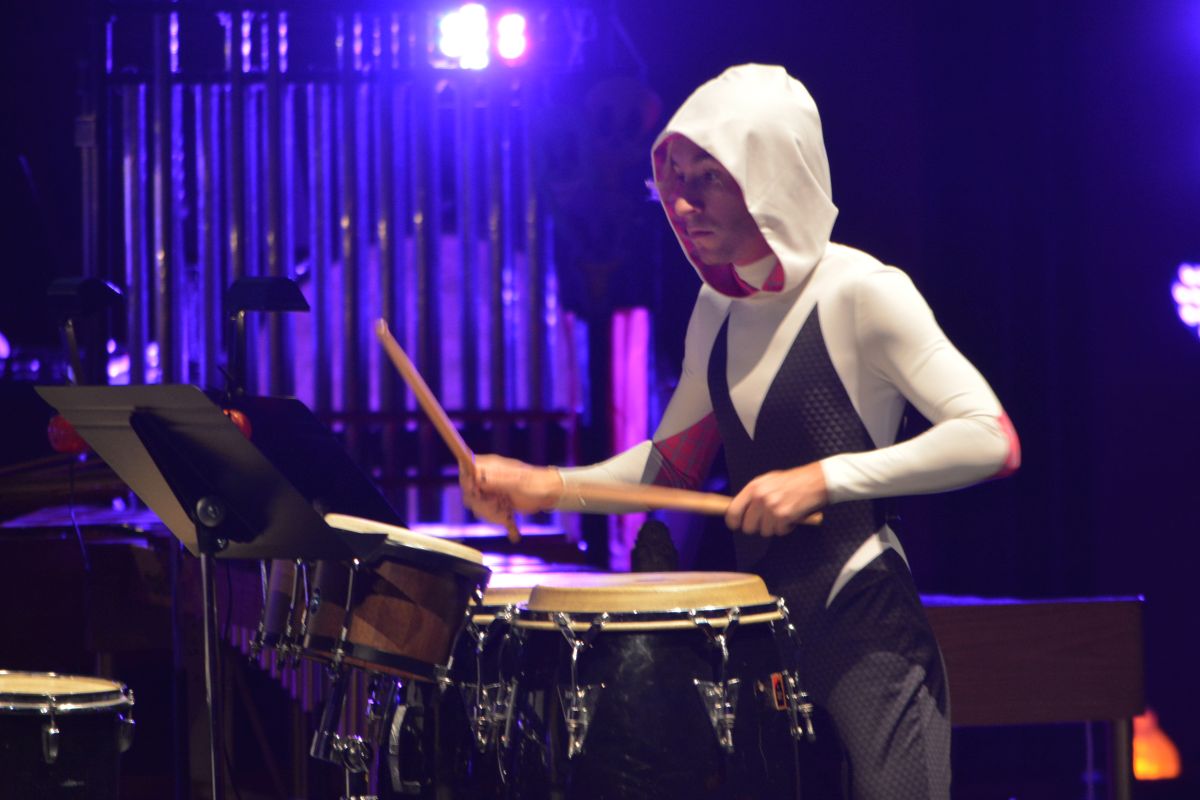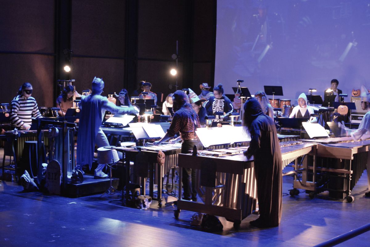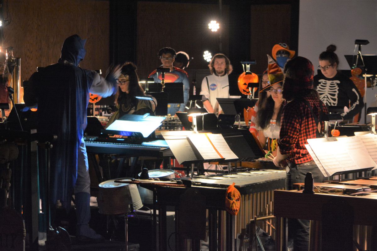 Close to 30 performers took to the George and Sharon Mabry Concert Hall stage filled with musicians led by David Steinquest, Professor of Percussion at APSU, who was dressed as his super-hero of choice, Batman.