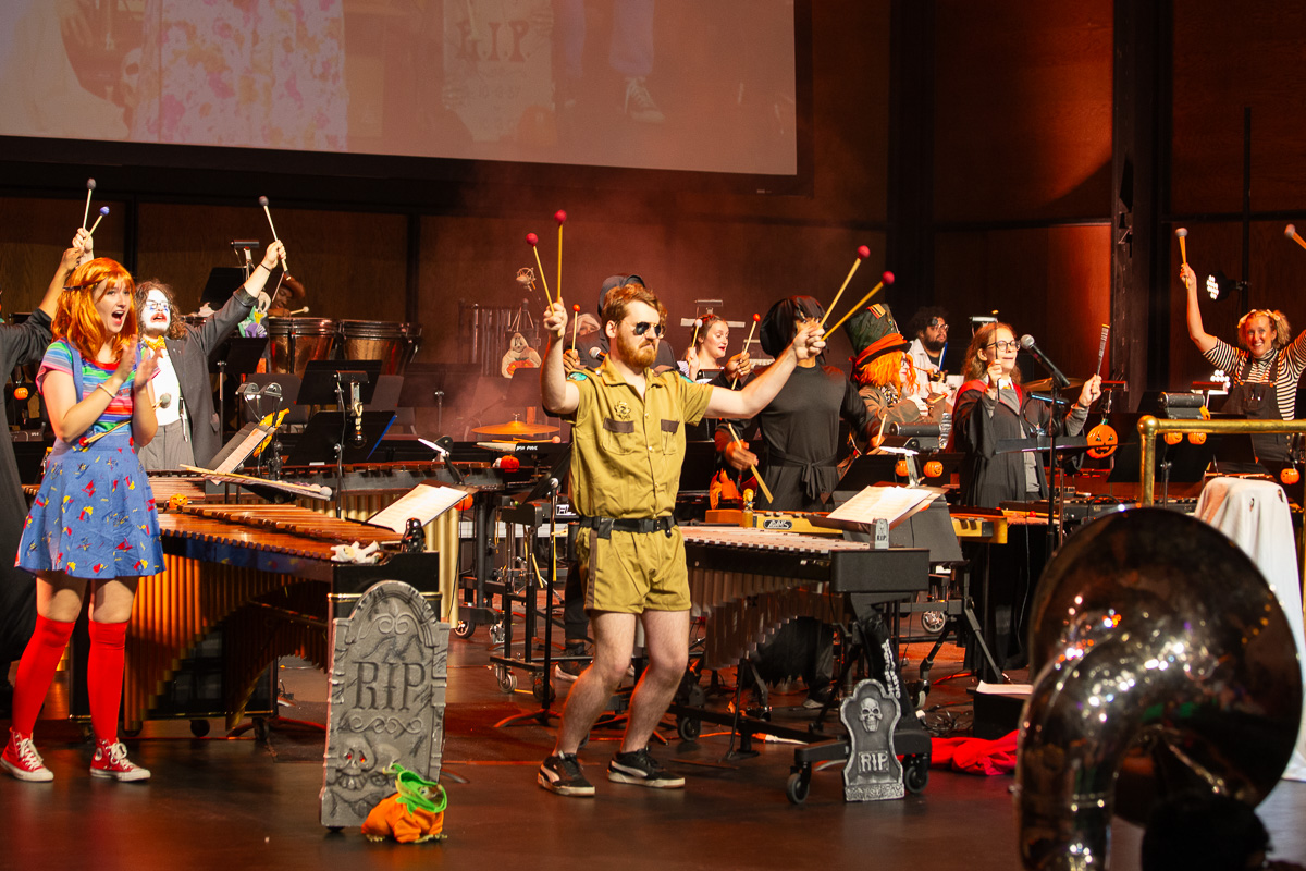 APSU Halloween percussion ensemble at the Music/Mass Communications building on Oct 27, 2023. (Wesley Irvin)