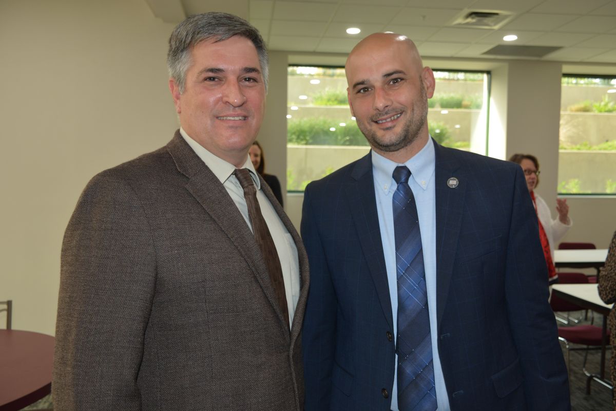L-R, State Representative Jason Hodges and Montgomery County Mayor Jim Durrett at the Clarksville Area Chamber of Commerce welcome reception for APSU President Dr. Michael Licari Friday, Apr. 16 2021 (Lee Erwin, Clarksville Now).