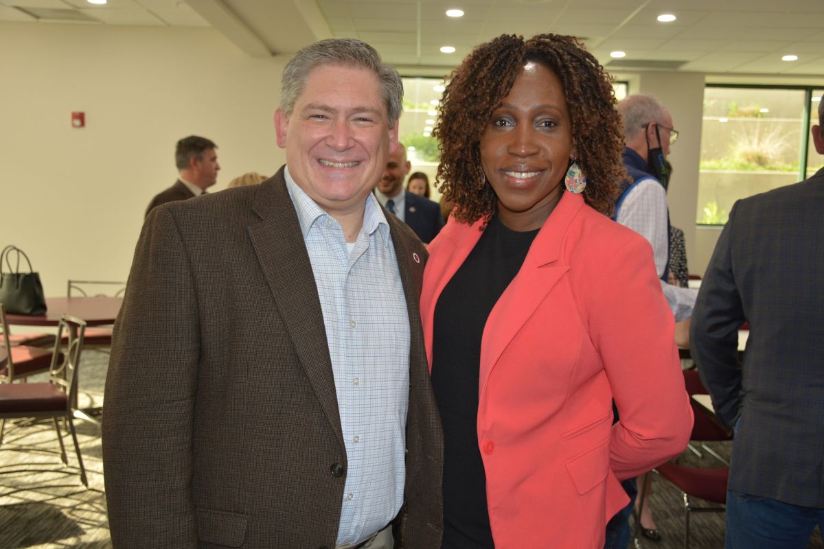 L-R, APSU President Dr. Michael Licari and Tennessee Small Business Development Center Director, Lorneth Peters at the Clarksville Area Chamber of Commerce welcome reception for APSU President Dr. Michael Licari Friday, Apr. 16 2021 (Lee Erwin, Clarksville Now).