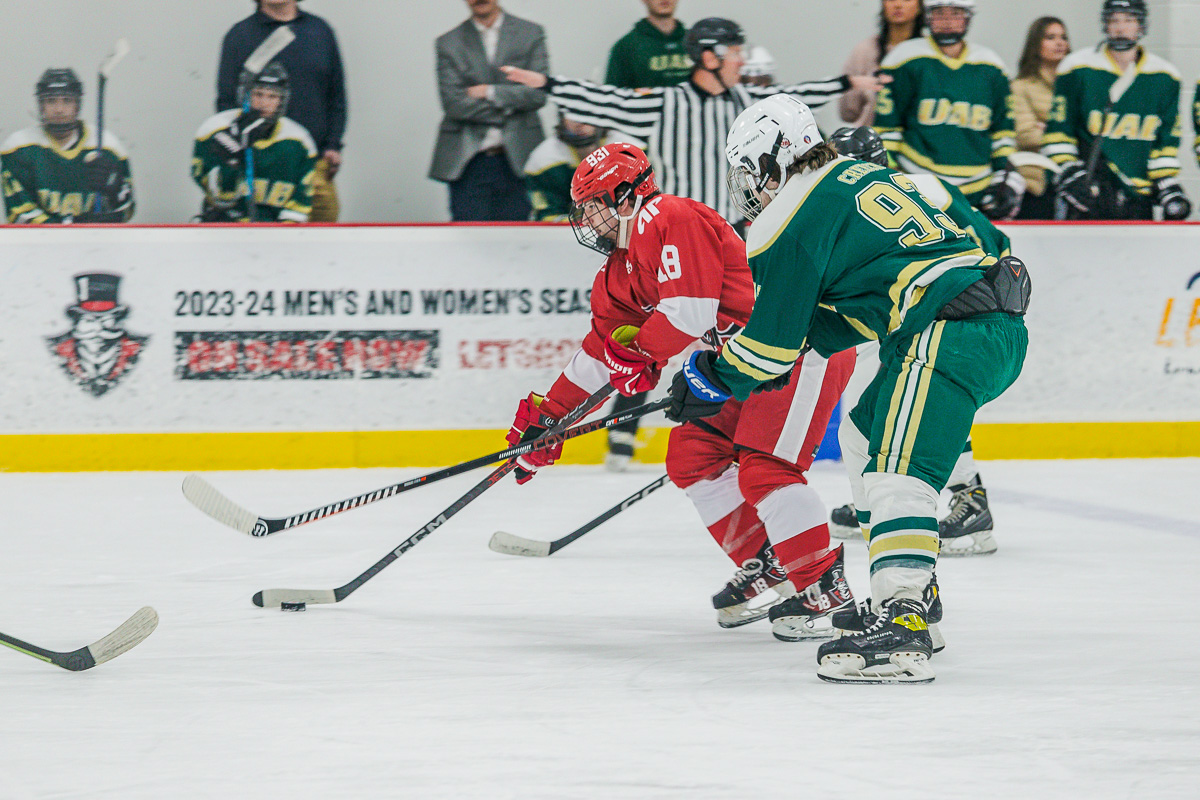 Govs Ice Hockey defeated the University of Alabama at Birmingham (UAB) Blazers in a 6-0 game Friday and 6-3 game Saturday at the Ford Center in F&M Bank Arena.