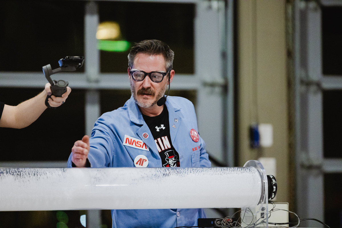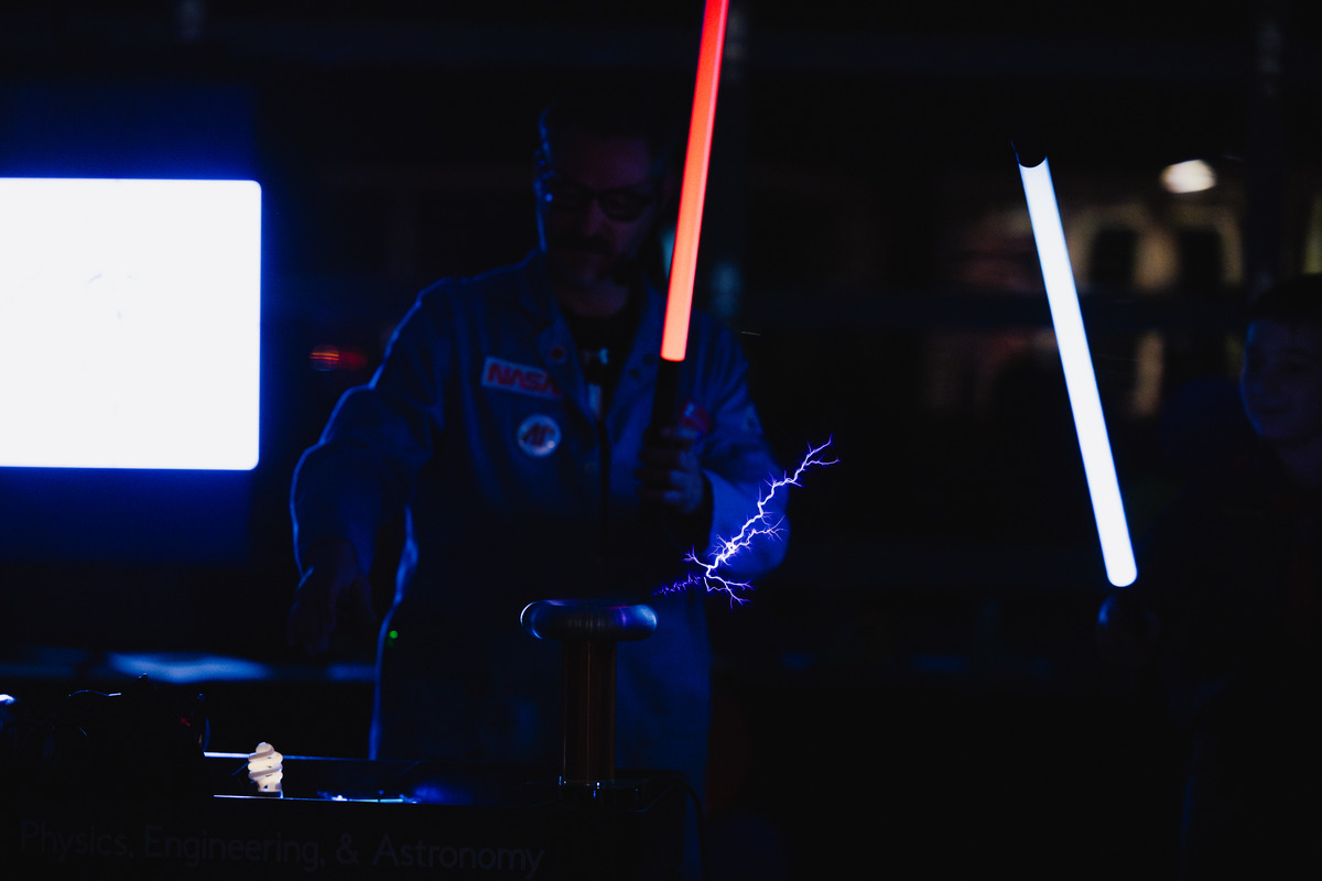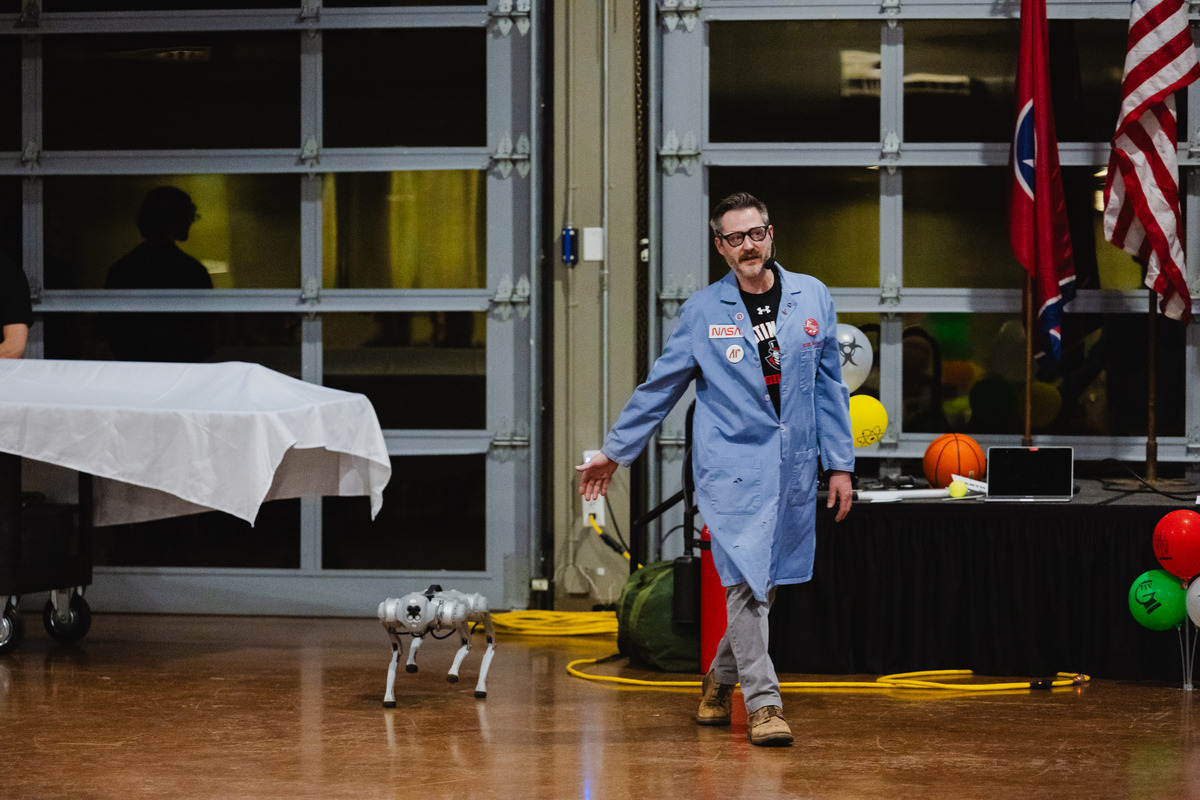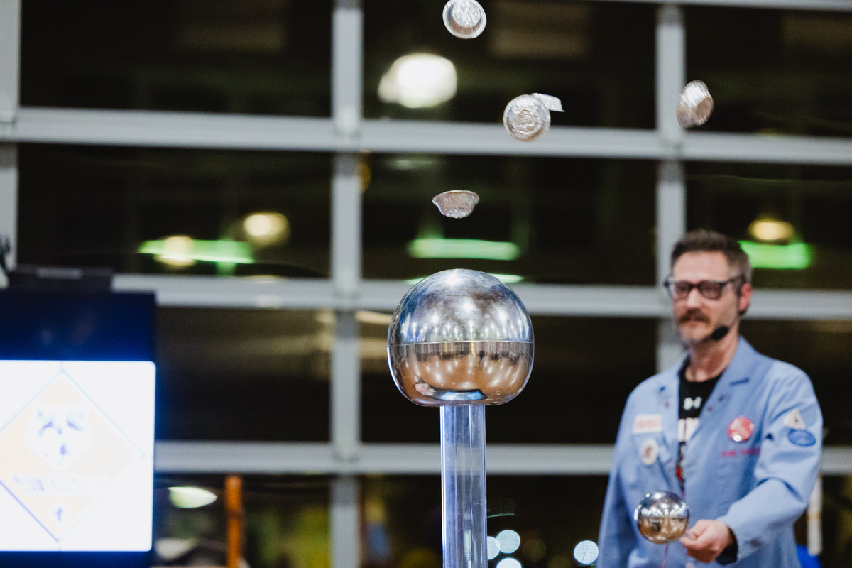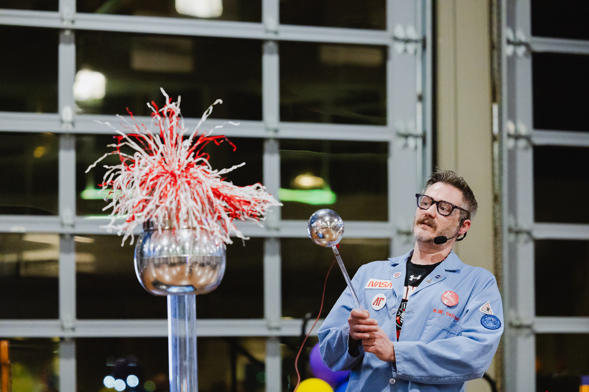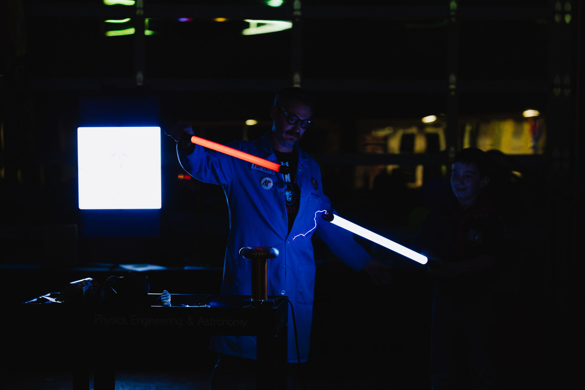 Bryan Gaither, the “Mad Scientist” at Austin Peay State University, demonstrates physics lessons for the Cub Scout Pack 503 Blue & Gold Banquet on Feb. 28. (Colby Wilson, contributed)