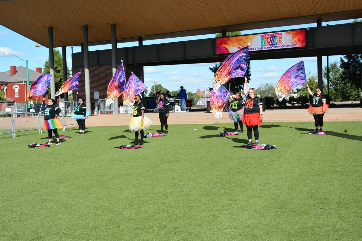 The Synergy Adult Colorguard perform at the 3rd Annual Artsville Fest with the ArtLink Team in downtown Clarksville on Oct. 7, 2023. (Lee Erwin)