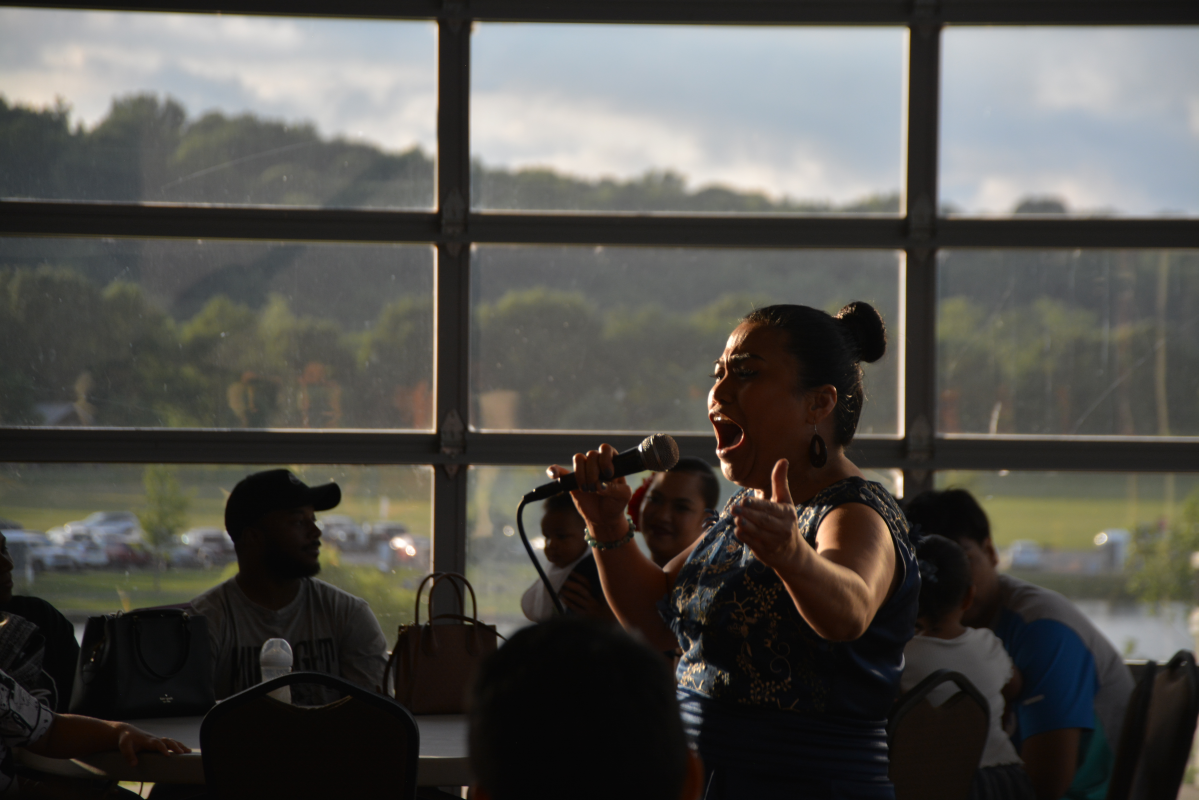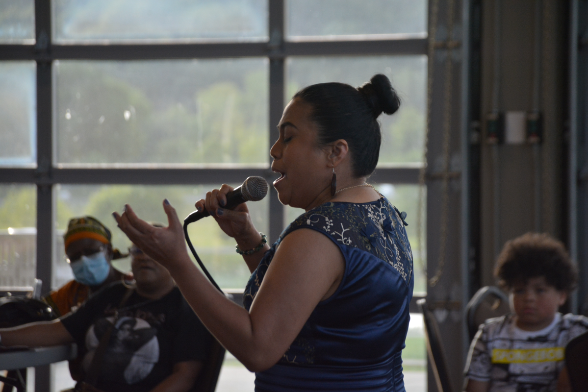Woman singing at the Asian-American Pacific Islander Event at the Wilma Rudolph Event Center on May 27, 2022. (Angela Peterson)