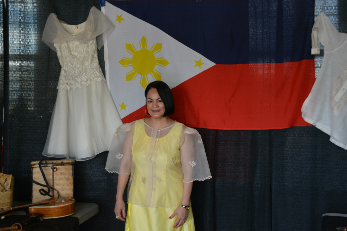 Lady posing in front of flag of the Philippines at the Asian-American Pacific Islander Event at the Wilma Rudolph Event Center on May 27, 2022. (Angela Peterson)