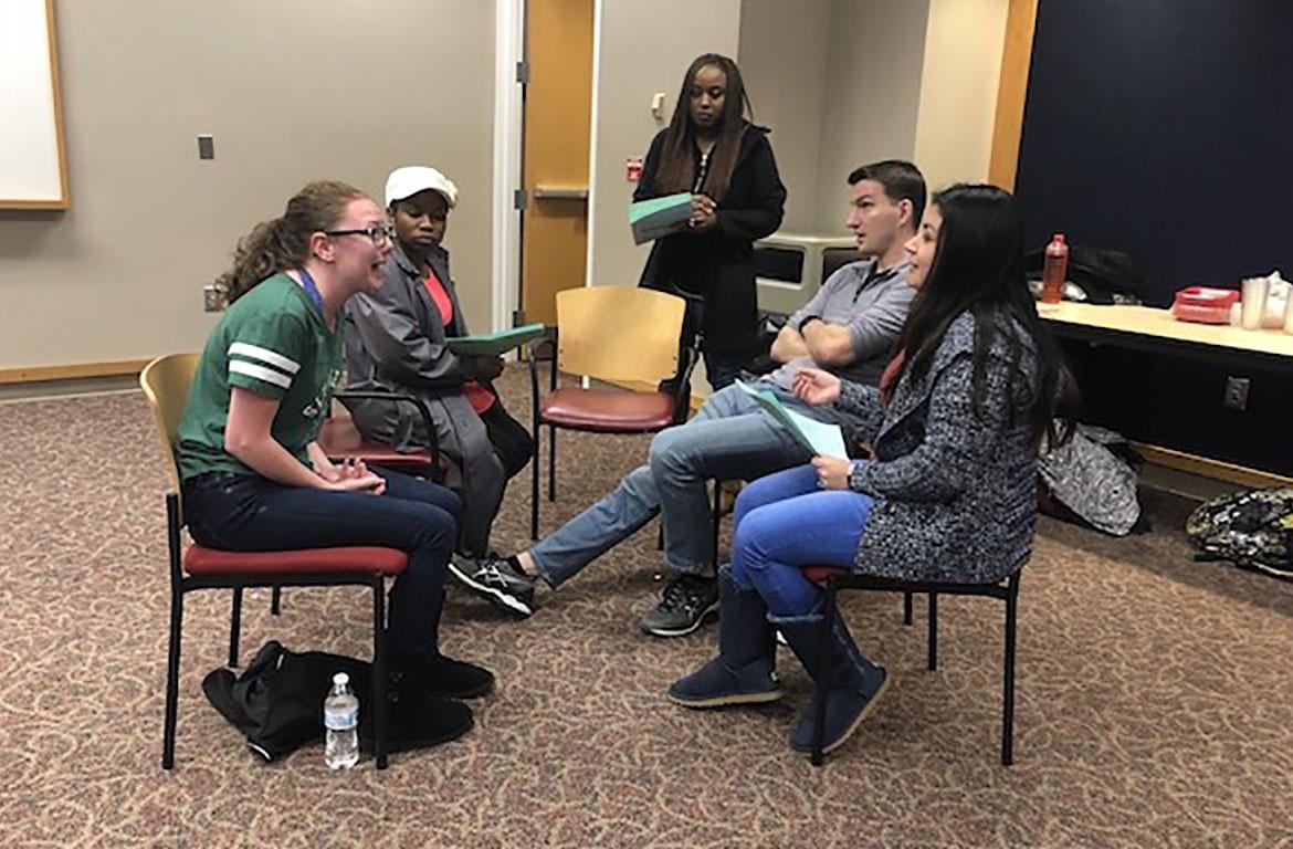 Beeson’s students took the assignment seriously, researching their roles and trying to tap into how parents would respond to something like a school shooting. As the evening went on, the young actors found themselves more comfortable playing their parts. Their different emotional reactions sometimes surprised the counseling students, which was exactly what Coggins wanted.