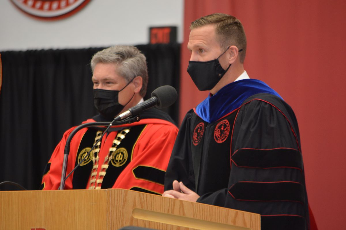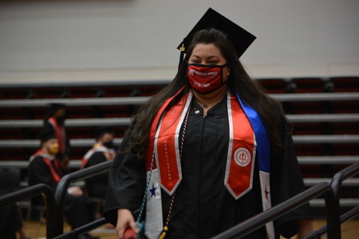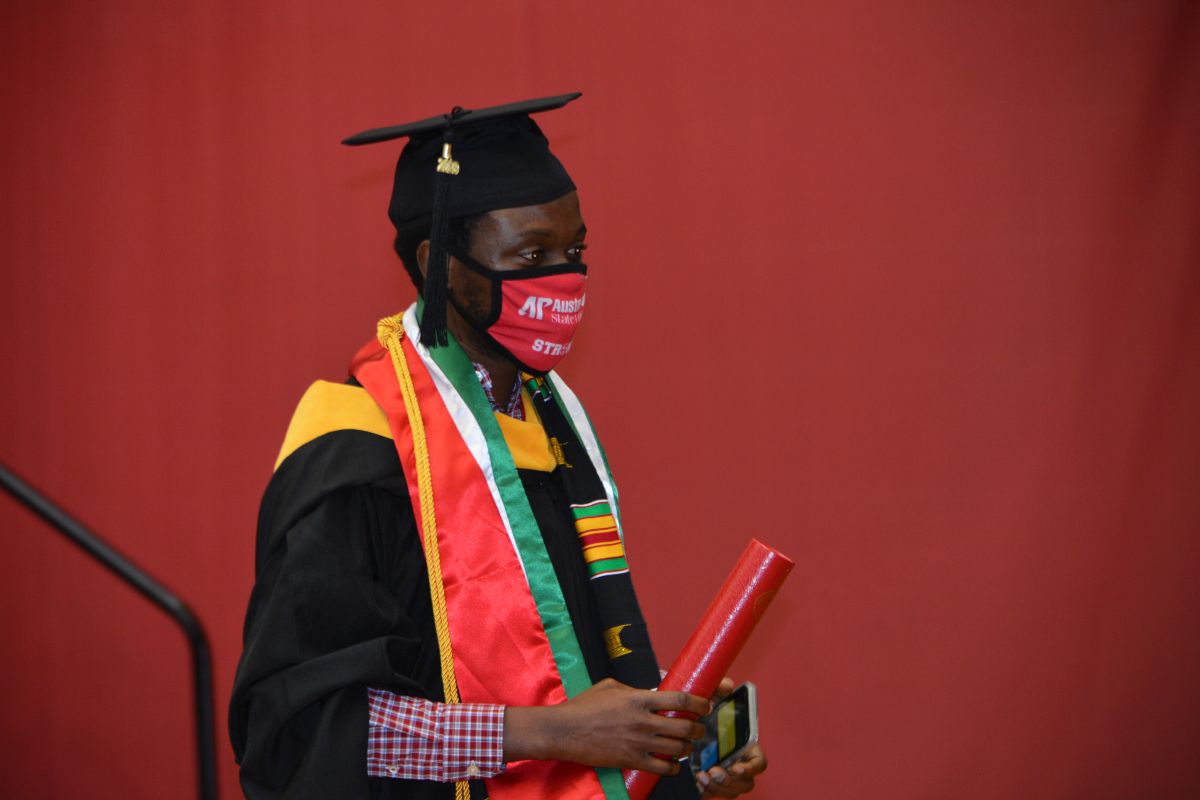 More students from the university’s Fall 2020 class will graduate Wednesday May 5. The university’s Spring 2021 graduates are scheduled to participate in five other commencement ceremonies Thursday, May 6, and Friday May 7. All ceremonies will be held inside the Dunn Center.