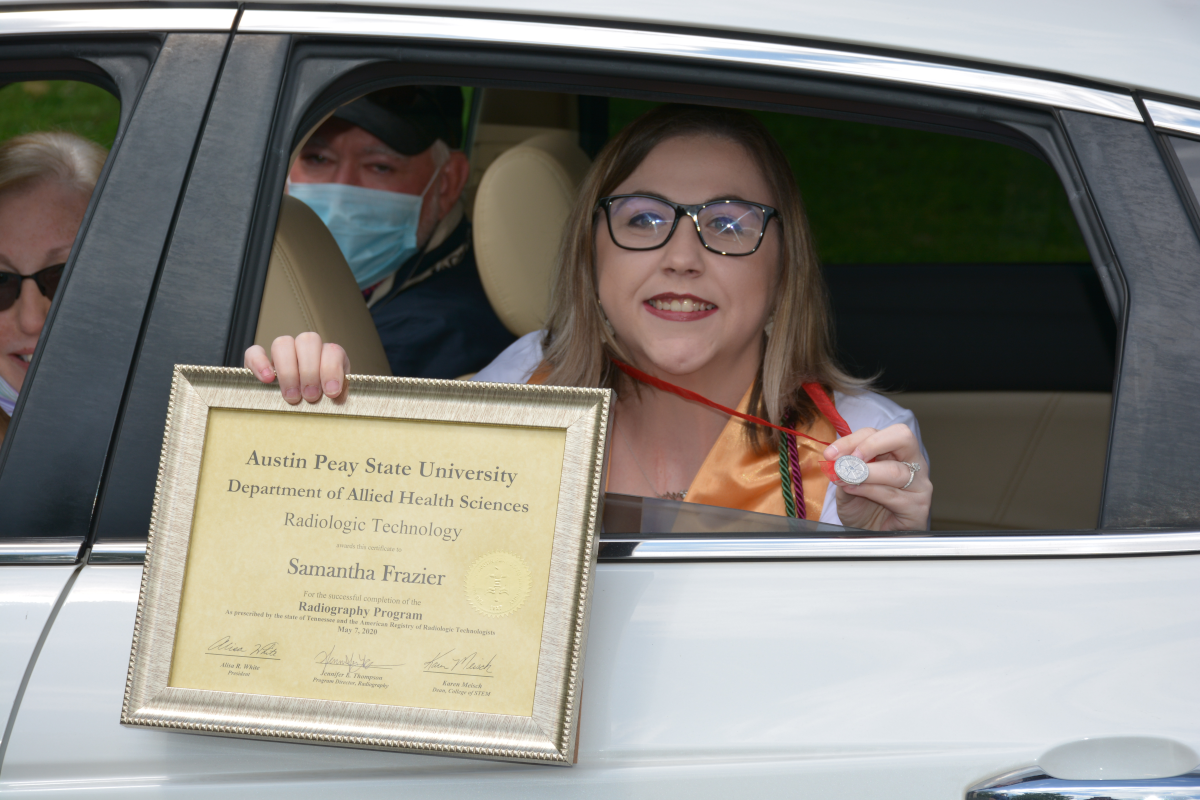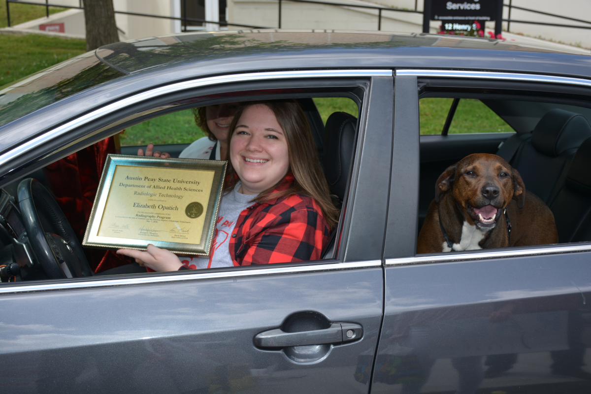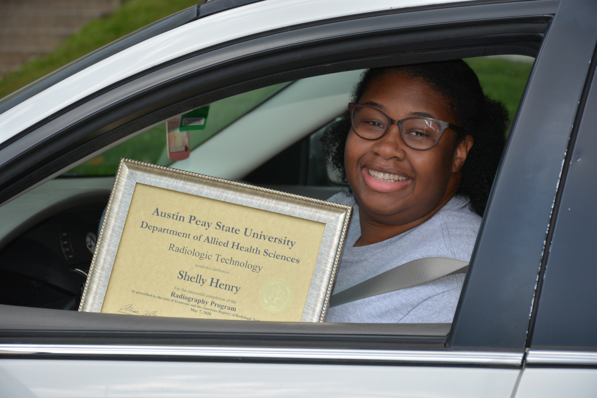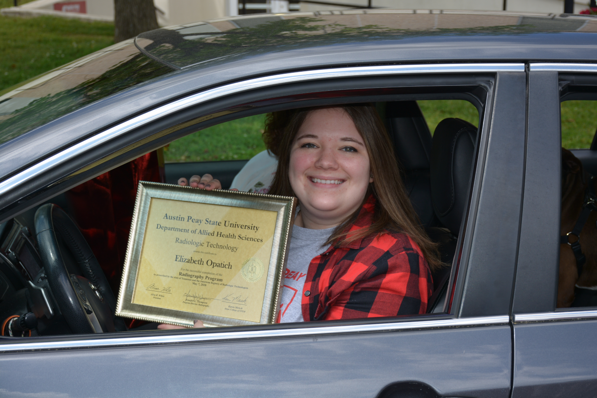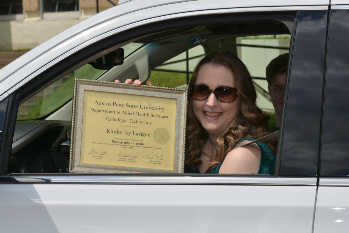 The same morning, across campus, APSU’s Medical Laboratory Science and Radiography programs also held pinning ceremonies. Students drove through to receive their pin, a gift and a certificate marking their achievements.