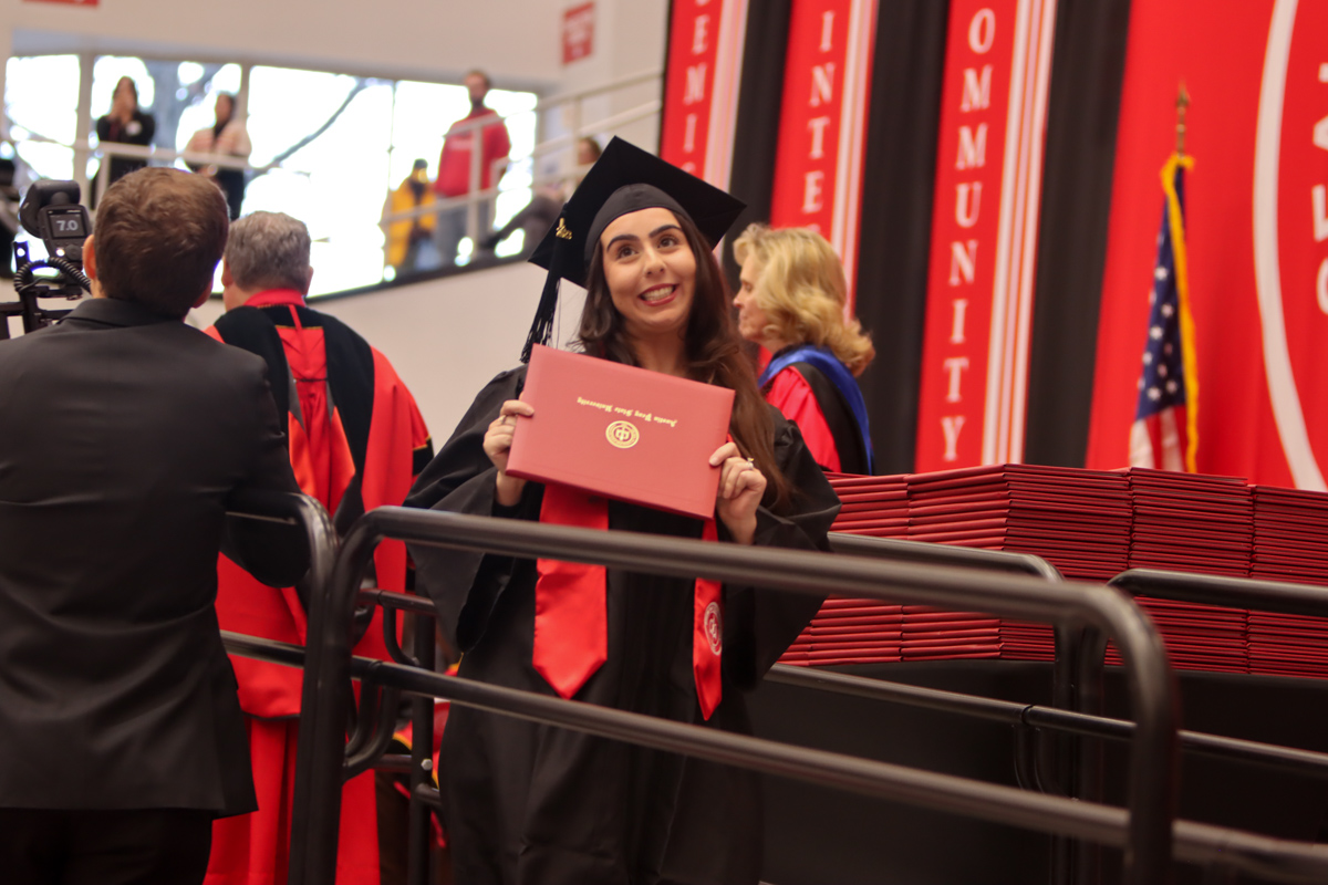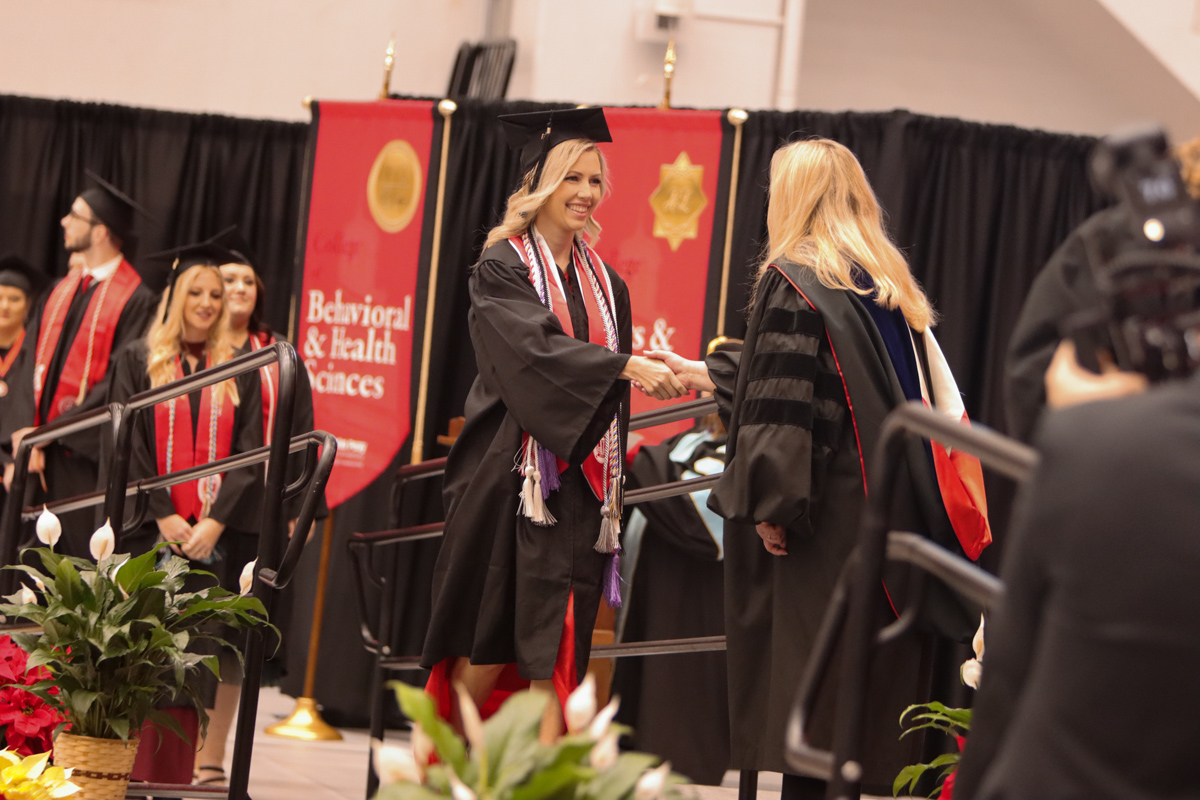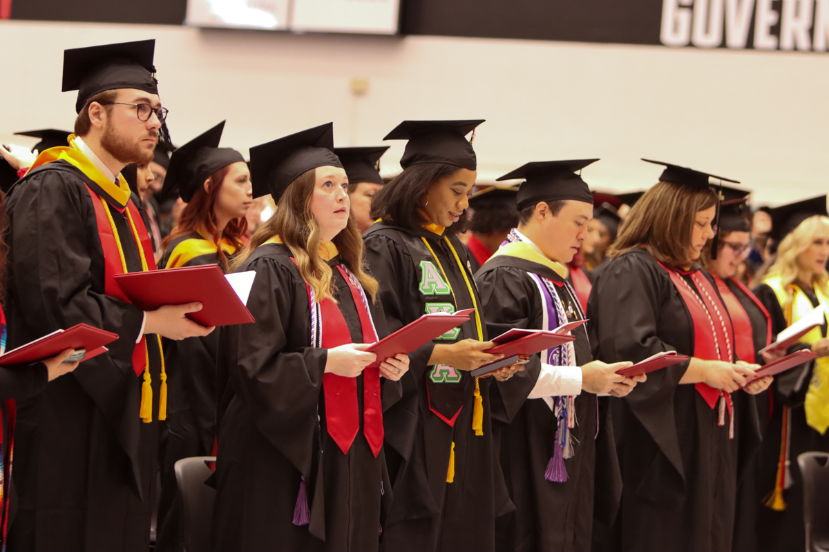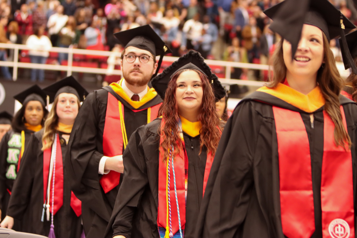 This semester’s graduating class includes 948 students, and approximately 700 participated between the two ceremonies on Friday. Undergraduate and graduate students from each of the University’s academic colleges were recognized.