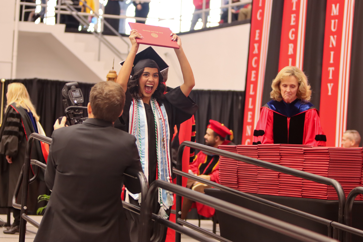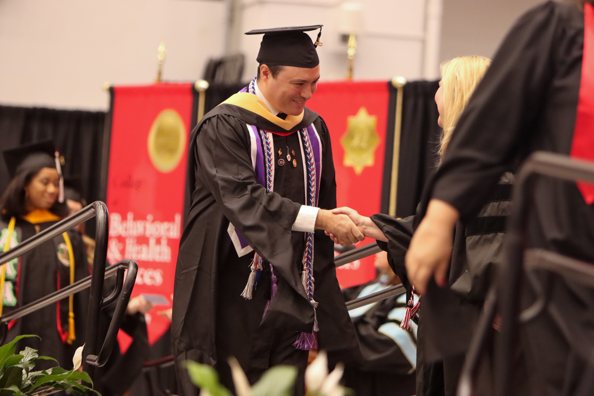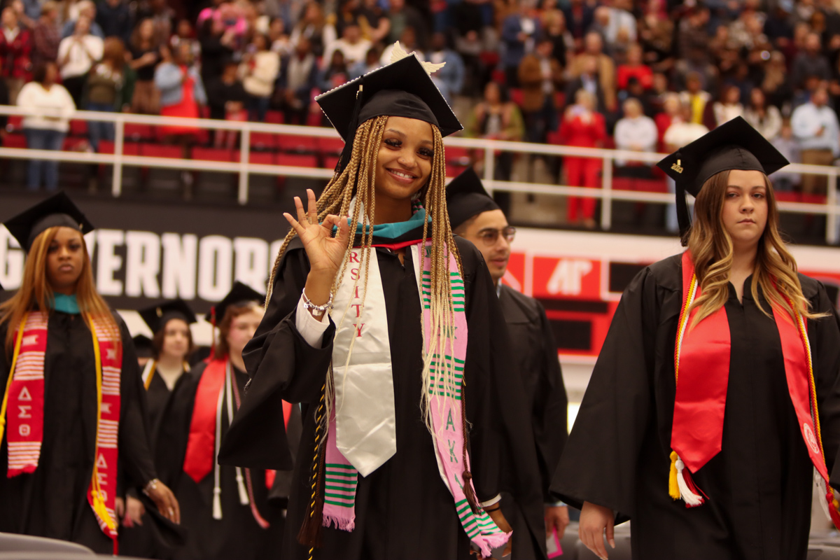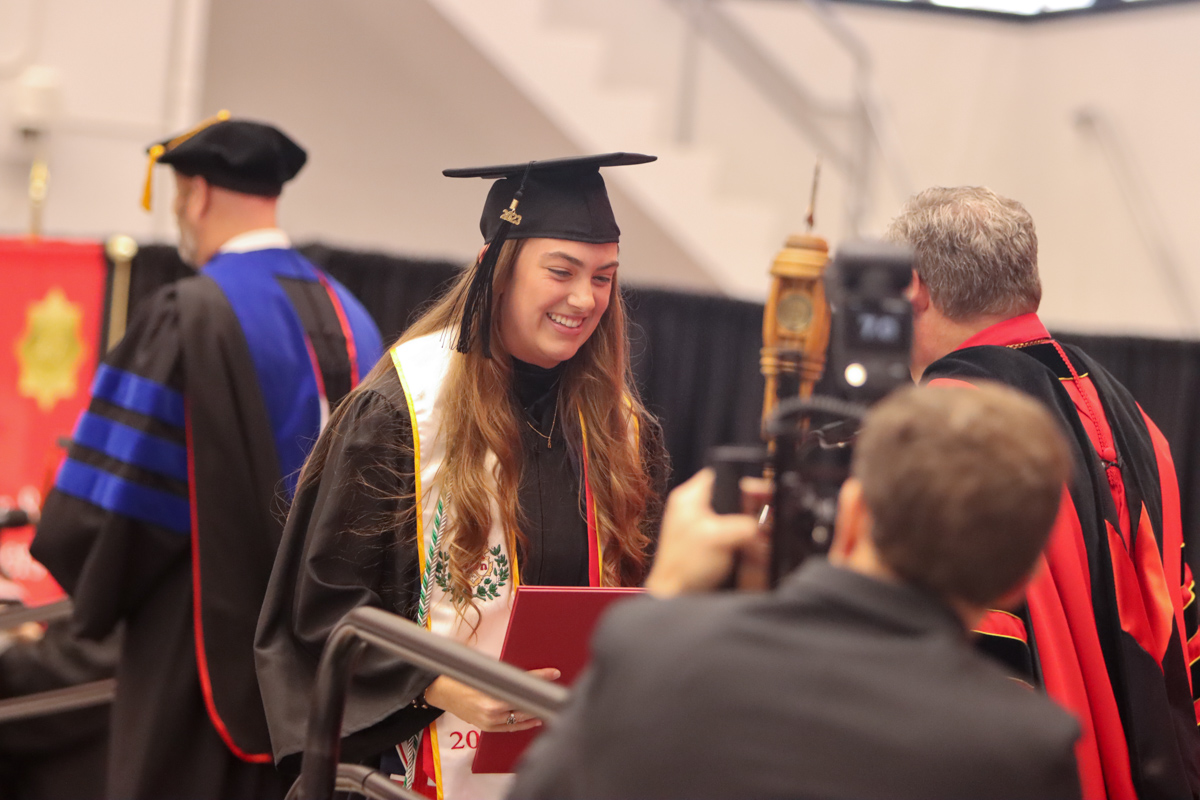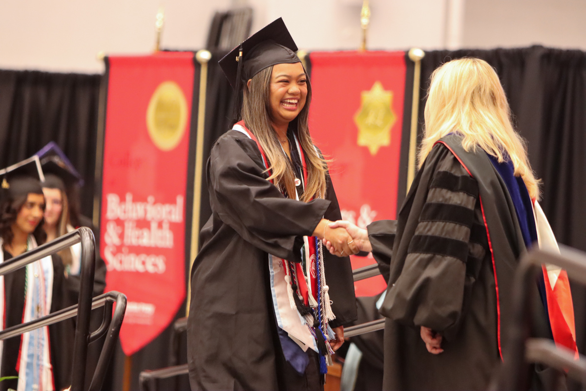 This semester’s graduating class includes 948 students, and approximately 700 participated between the two ceremonies on Friday. Undergraduate and graduate students from each of the University’s academic colleges were recognized.