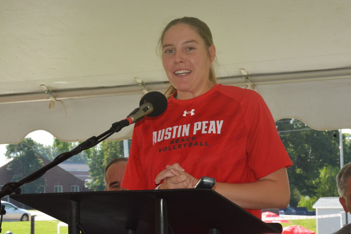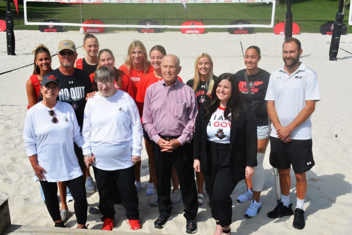 CLARKSVILLE, TN (CLARKSVILLE NOW) – Austin Peay State University held a ribbon cutting Wednesday for the Atkins Family Beach Volleyball Facility on the front lawn of the Winfield Dunn Center.