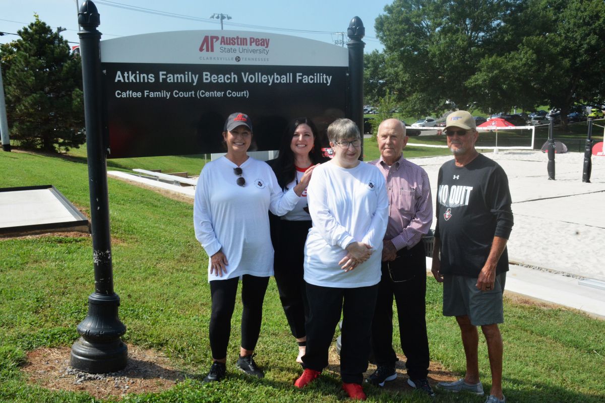 In June 2023, the APSU Board of Trustees voted to have the beach volleyball area in the Joe and Cathi Maynard Family Athletics Complex named after the Atkins family in honor of their gift to benefit APSU’s women’s athletic programs.