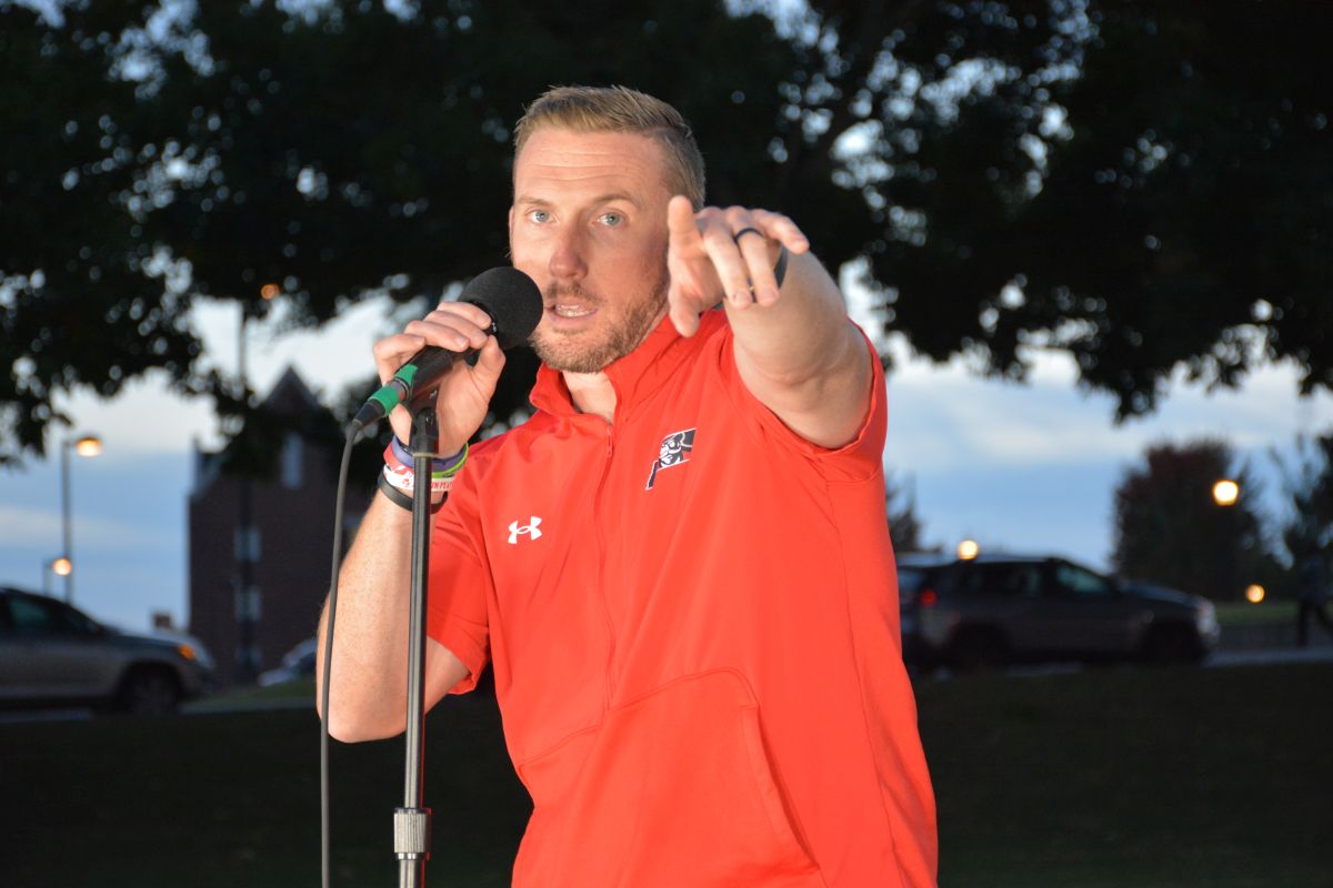 Austin Peay State University Head Football Coach Scotty Walden helps kick-off the Governors Homecoming week of activities with a bonfire and pep rally on the lawn of the Dunn Center on Oct. 23, 2023. (Lee Erwin)