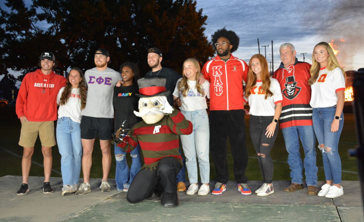 CLARKSVILLE, TN (CLARKSVILLE NOW) – Austin Peay State University kicked off Homecoming 2023 with the theme “Nightmare on College Street … Fear the Stache” on Monday. A crowd of more than 500 fans gathered on the lawn of the Dunn Center, also known as the Dunn Bowl, for a bonfire and pep rally.