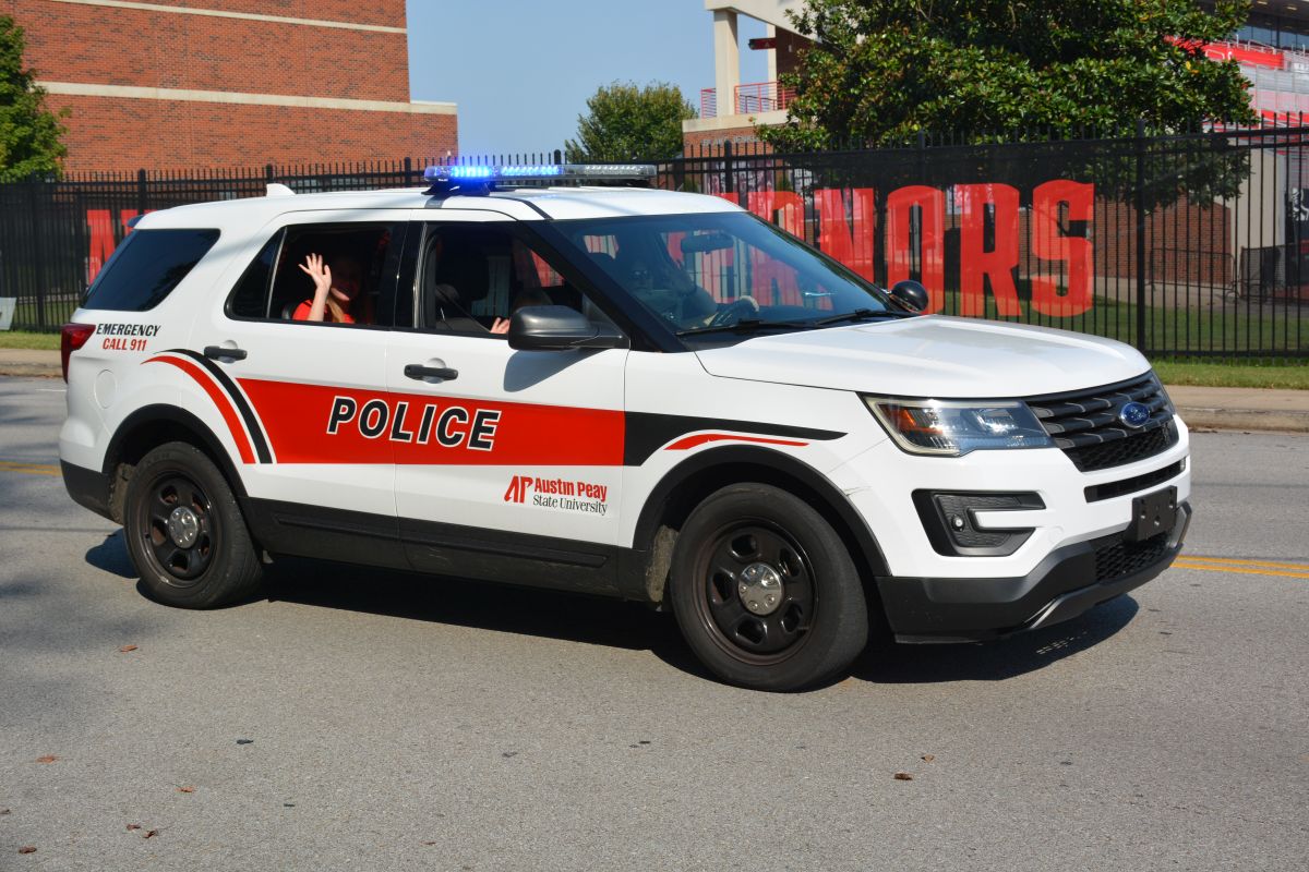 A campus police vehicle in the 76th Annual Homecoming Parade on the campus of Austin Peay State University on Saturday, October 9 2021 (Lee Erwin).