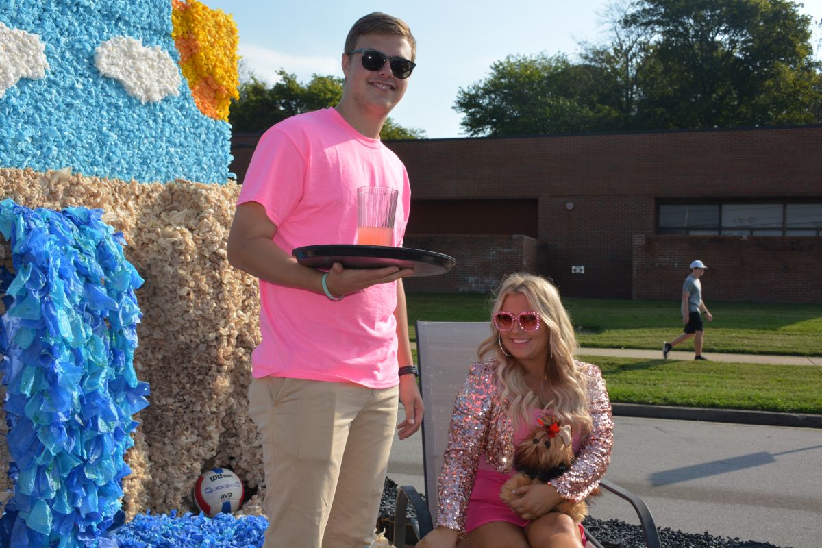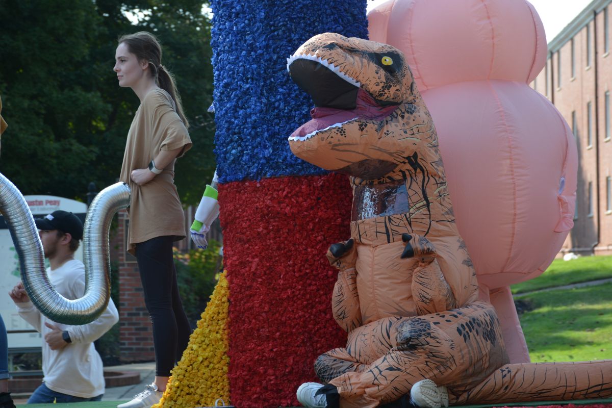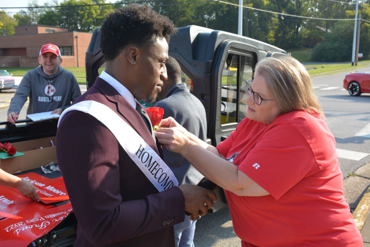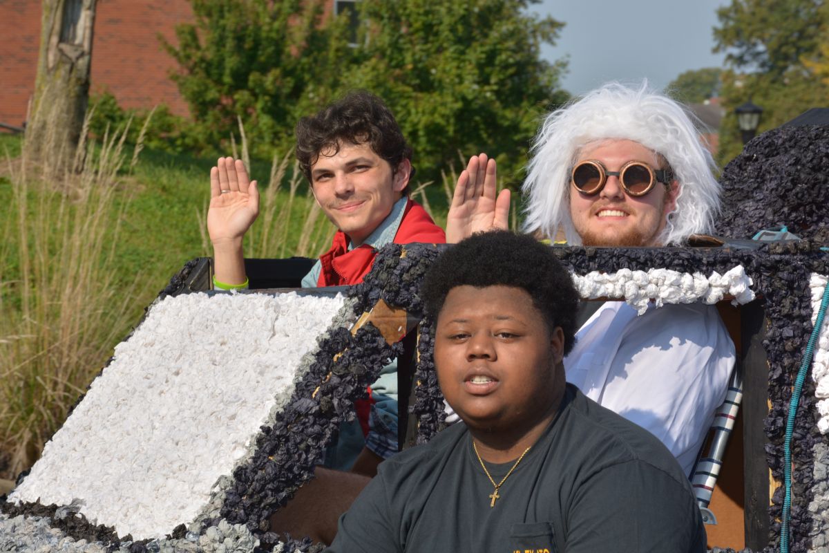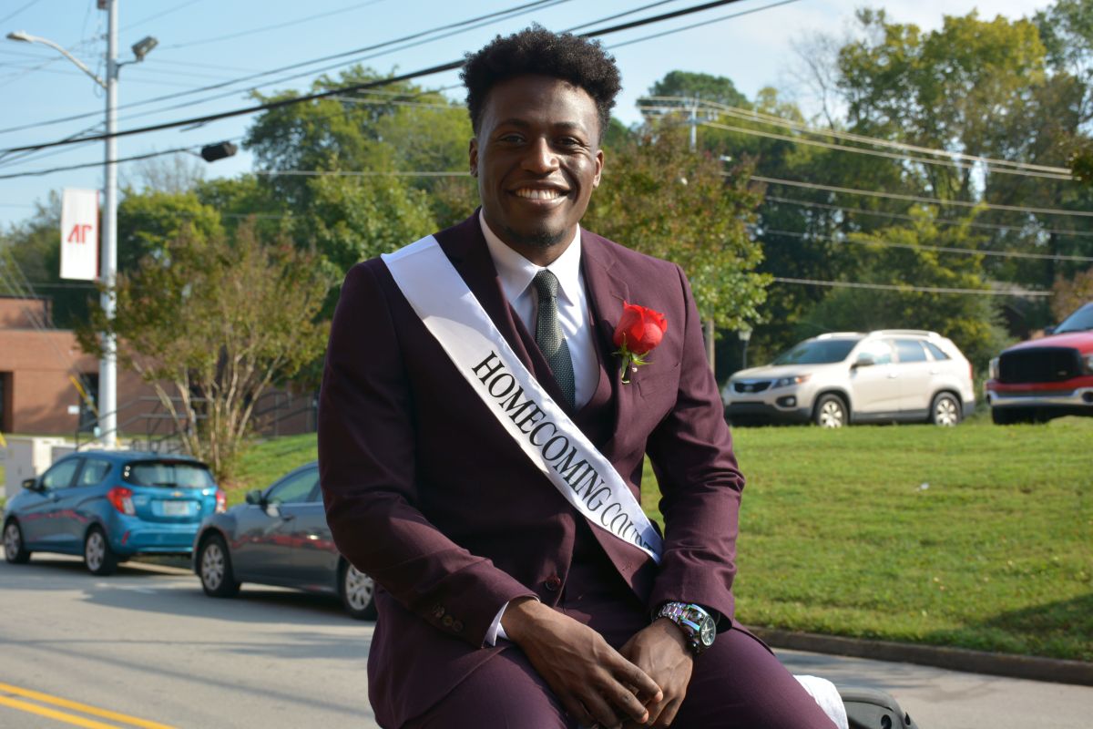 A participant in the 76th Annual Homecoming Parade gets a little help on the campus of Austin Peay State University on Saturday, October 9 2021 (Lee Erwin).