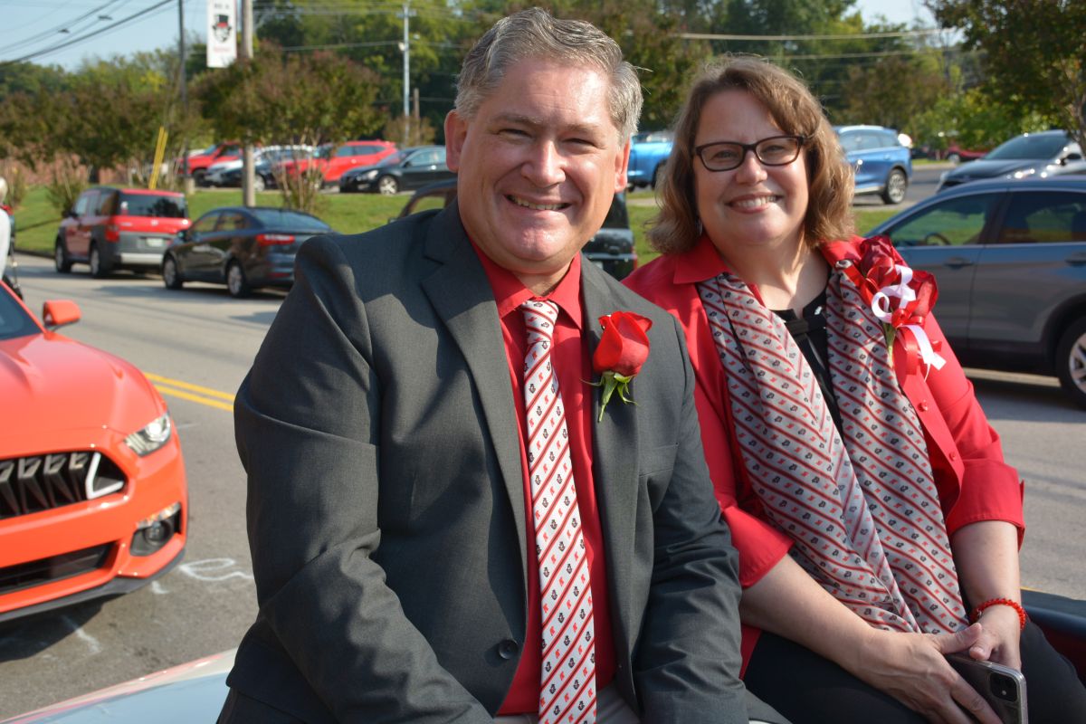 APSU President Michael Licari and his wife Kirsten riding in the 76th Annual Homecoming Parade on the campus of Austin Peay State University on Saturday, October 9 2021 (Lee Erwin).