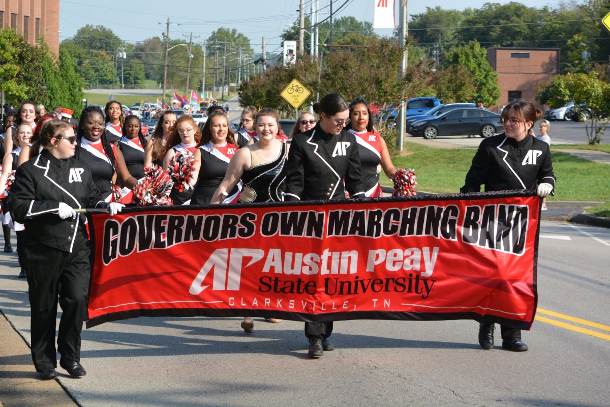 Clarksville NowThe Governors Own Marching Band leads the 76th Annual Homecoming Parade on the campus of Austin Peay State University on Saturday, October 9 2021 (Lee Erwin).