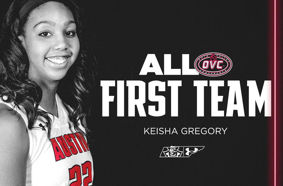 BRENTWOOD, Tennessee (ESPN CLARKSVILLE) – Austin Peay State University senior guard Keisha Gregory has been named First-Team All-Ohio Valley Conference, the league announced Tuesday.