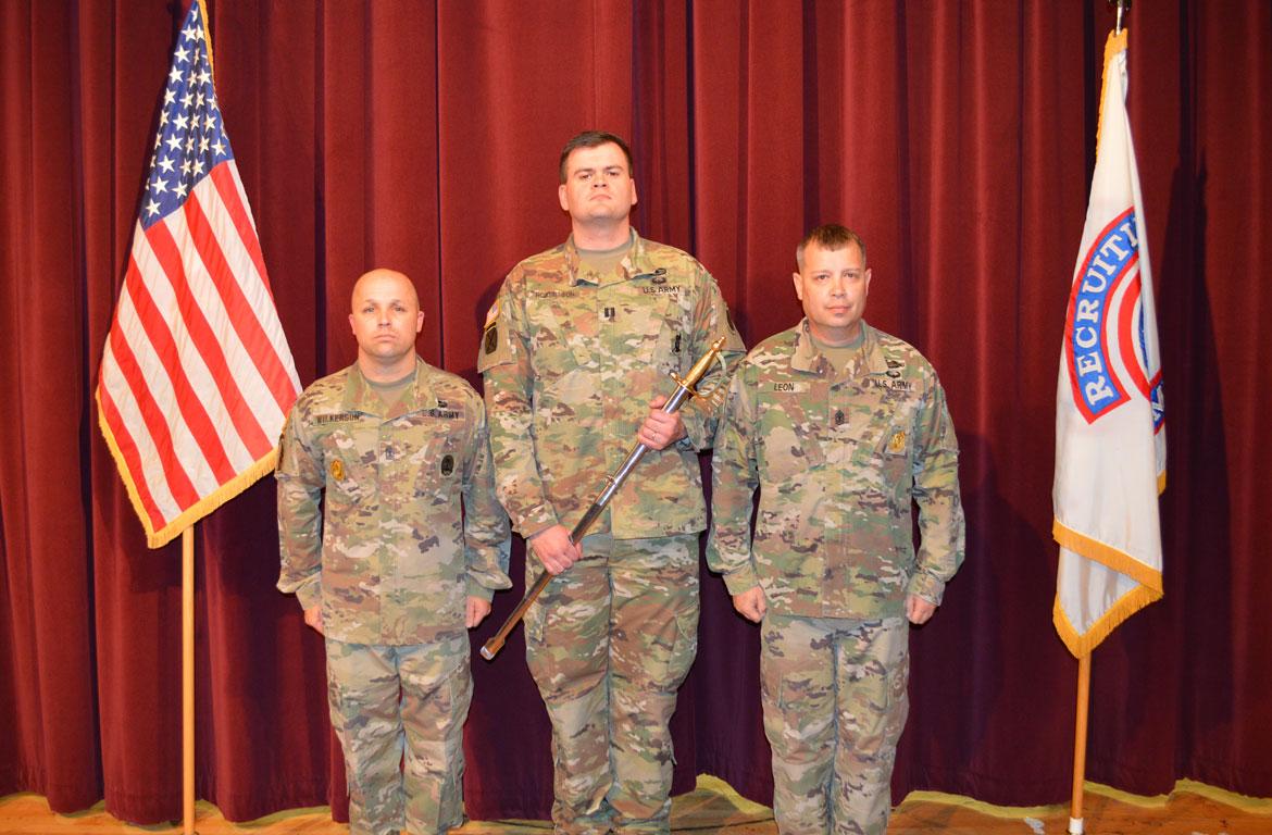 CLARKSVILLE, Tenn. (CLARKSVILLENOW) After nearly 2-1/2 years on the job, 1st Sgt. Shawn Wilkerson is departing Clarksville Company to take another recruiting company in Mobile, Ala. His successor is 1st Sgt. Roy Leon who was formally installed Friday in a ceremony held at West Creek High School.