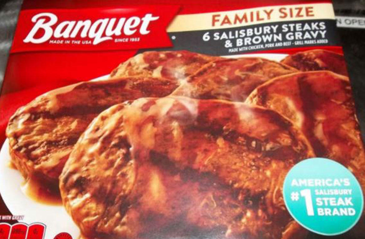 27-oz. carton containing plastic shrink-wrapped packages containing 6 pieces of “Banquet FAMILY SIZE 6 SALISBURY STEAKS & BROWN GRAVY MADE WITH CHICKEN, PORK AND BEEF – GRILL MARKS ADDED” with lot code 5006 8069 10 05and a ‘BEST BY’ date of SEP 01 2019 printed on the package.