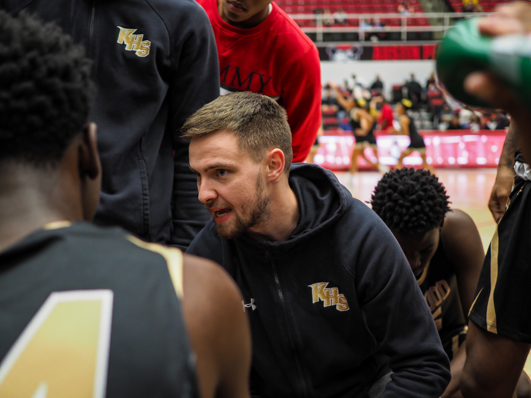 Coach Chase Cronin as the Rossview High School boys Hawks play the Kenwood Knights at the basketball jamboree on Nov. 8, 2021. (Ryan Vinson)