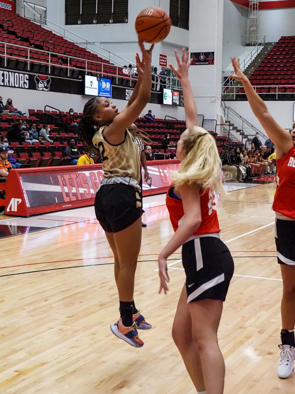 Iyanna Curtis of Kenwood as the Rossview High School girls Hawks play the Kenwood Knights at the basketball jamboree on Nov. 8, 2021. (Ryan Vinson)