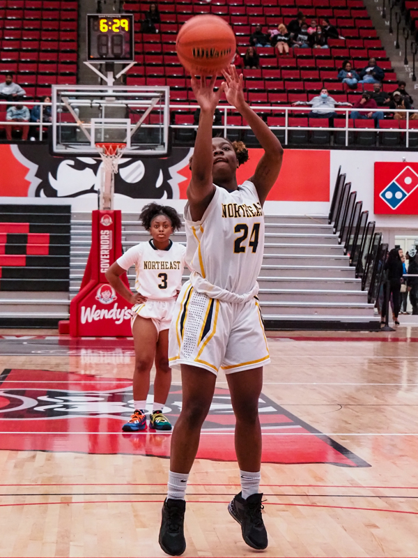 Cierra Bowser as the Northeast High School girls Eagles play the Clarksville Academy Cougars at the basketball jamboree on Nov. 8, 2021. (Ryan Vinson)