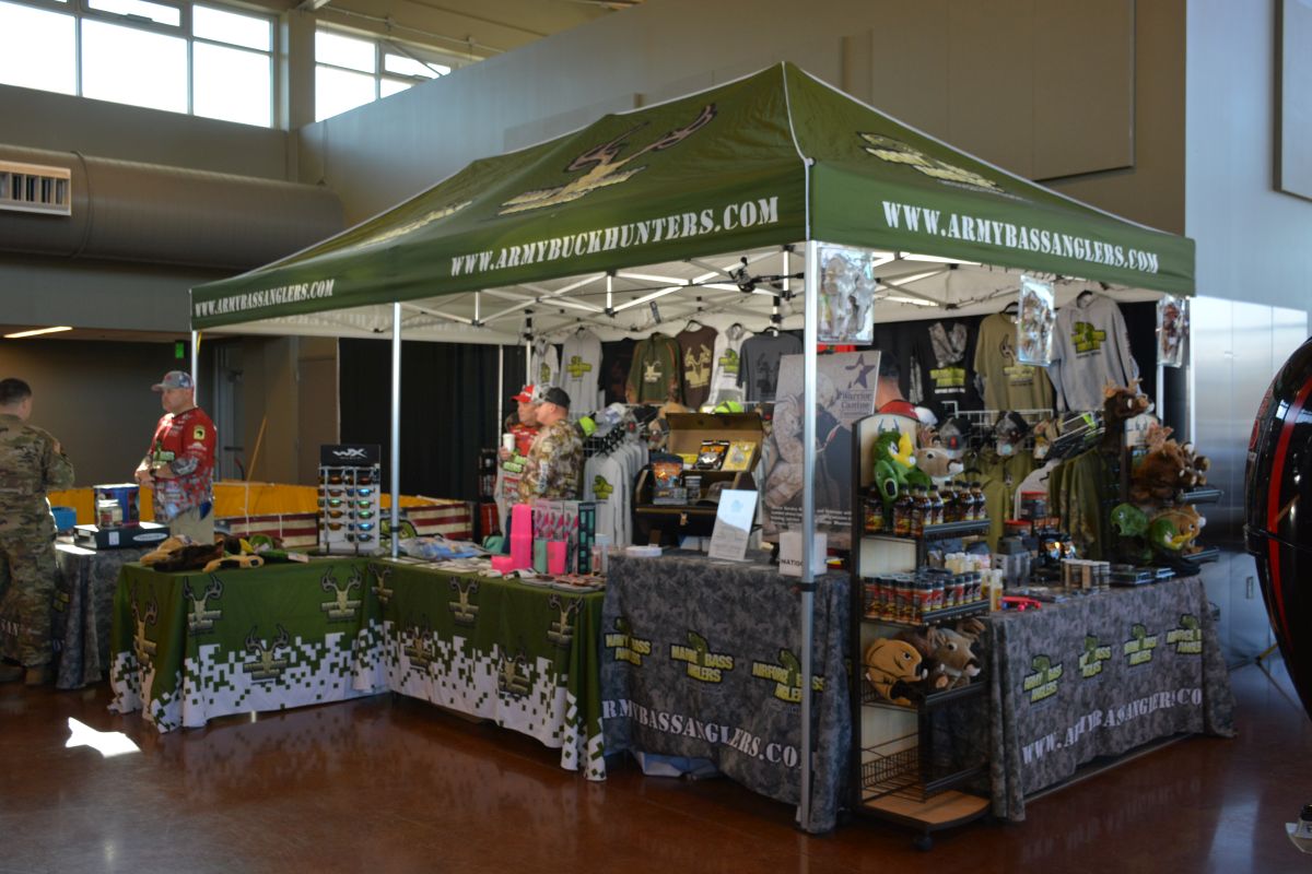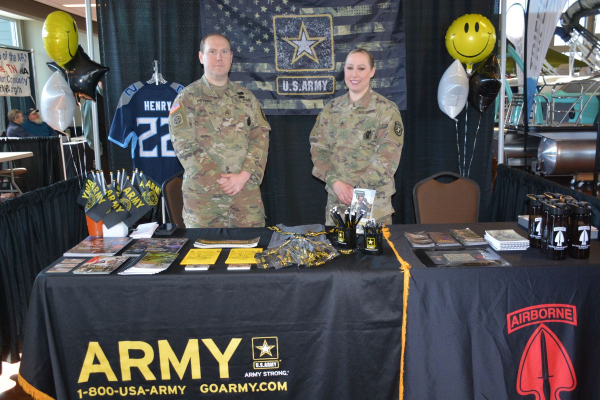 Soldiers at the U.S. Army booth at the Beaver Country 100.3 Hunting & Fishing Expo through Sunday at the Wilma Rudolph Event Center, Jan. 28, 2022. (Lee Erwin)