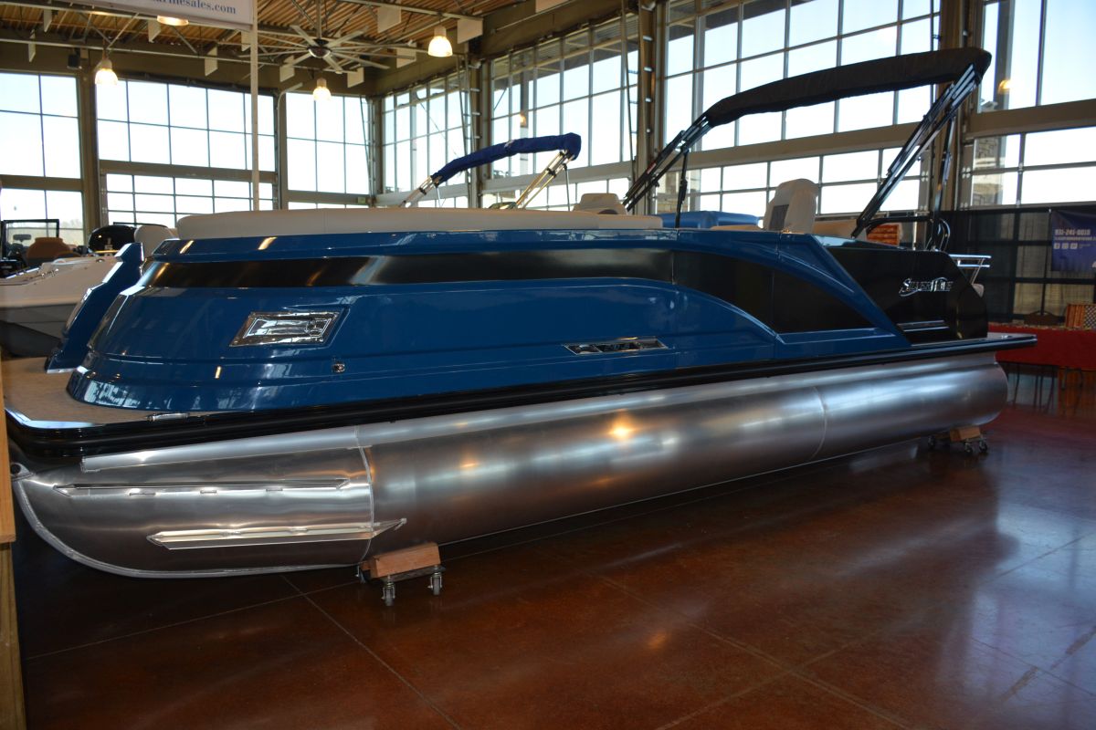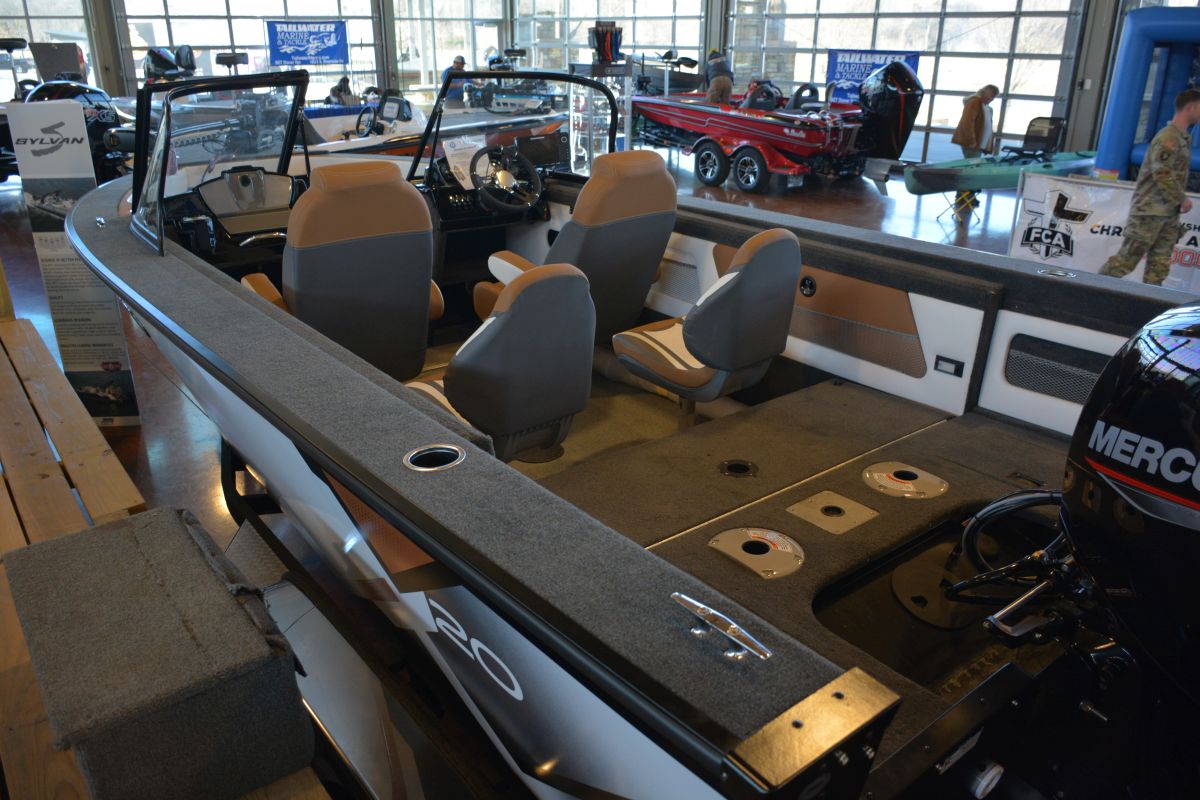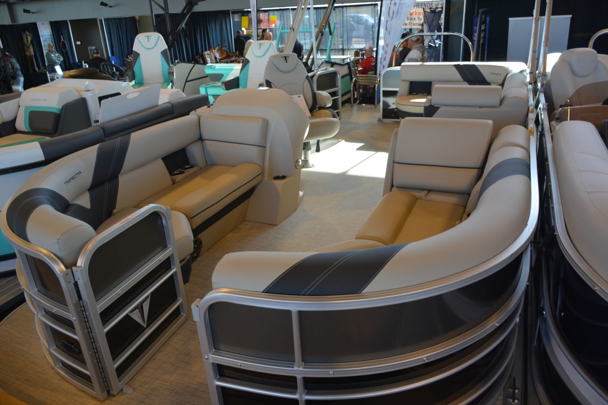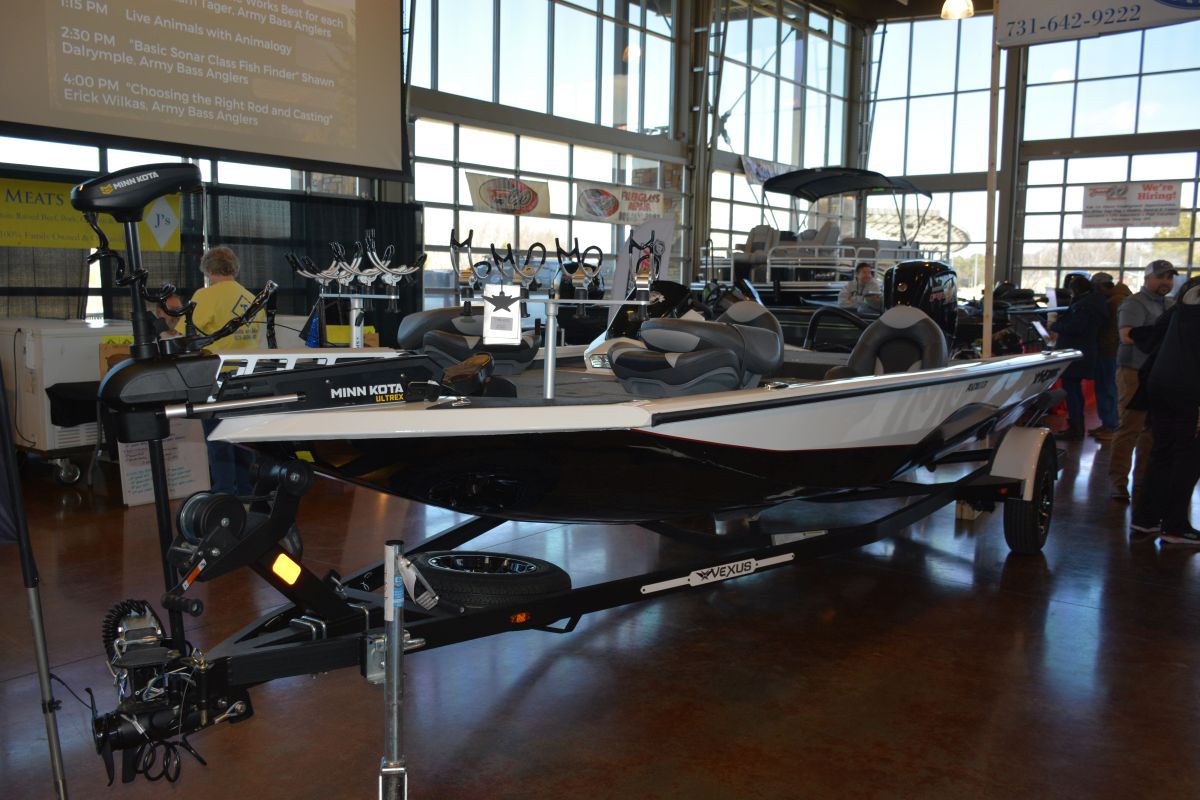 One of the many boats on display at the Beaver Country 100.3 Hunting & Fishing Expo through Sunday at the Wilma Rudolph Event Center, Jan. 28, 2022. (Lee Erwin)