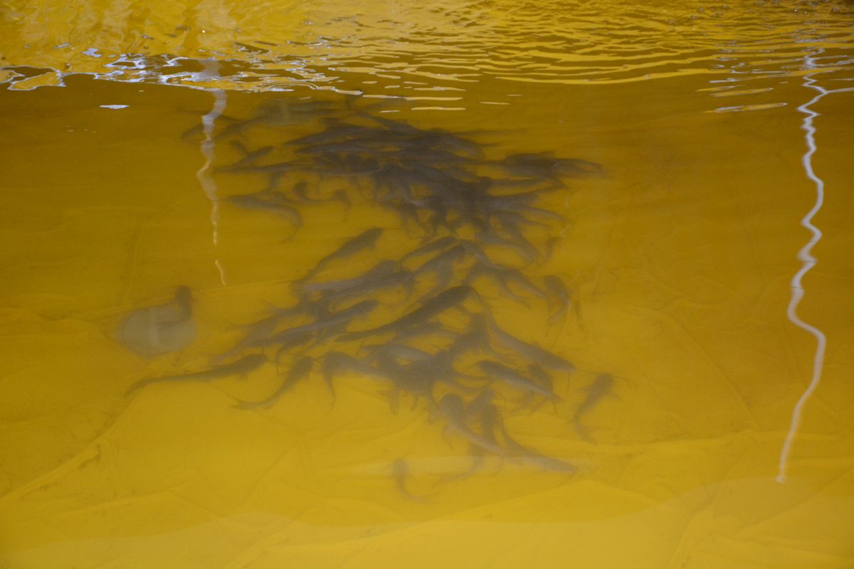 Fish inside the kid’s fishing pool at the Beaver Country 100.3 Hunting & Fishing Expo through Sunday at the Wilma Rudolph Event Center, Jan. 28, 2022. (Lee Erwin)