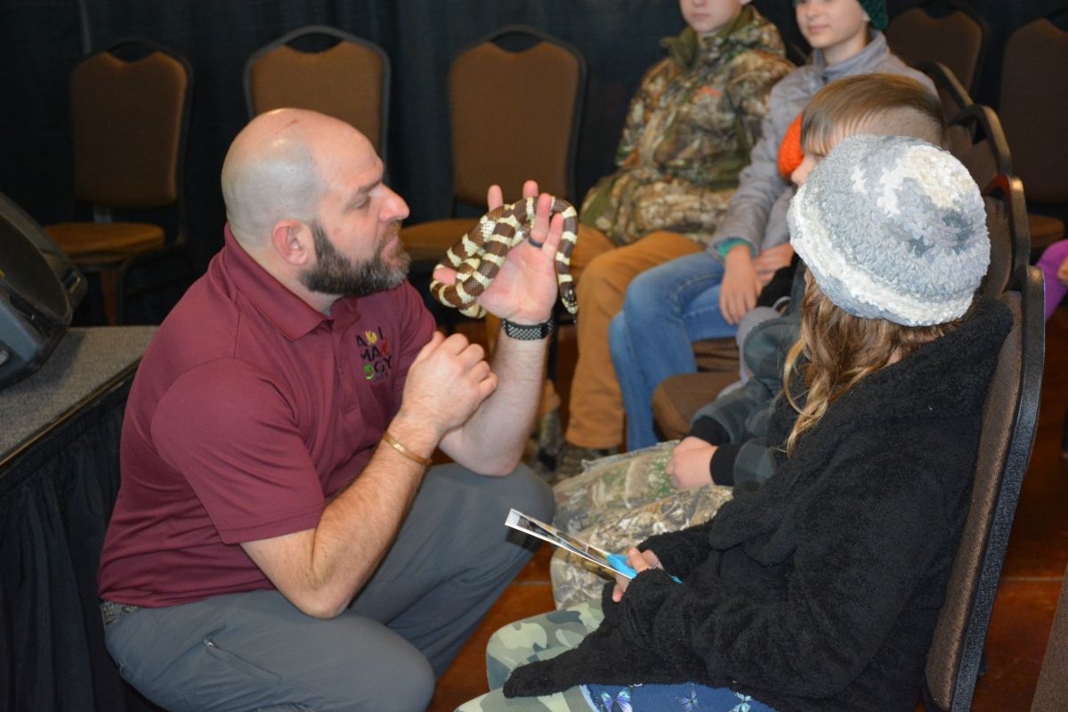 Visitors learn about wildlife at the Beaver Country 100.3 Hunting & Fishing Expo through Sunday at the Wilma Rudolph Event Center, Jan. 28, 2022. (Lee Erwin)