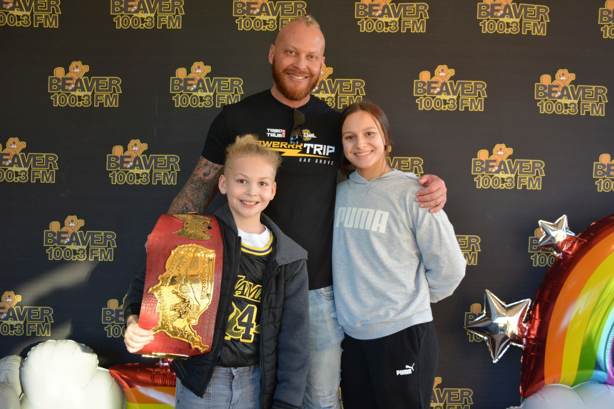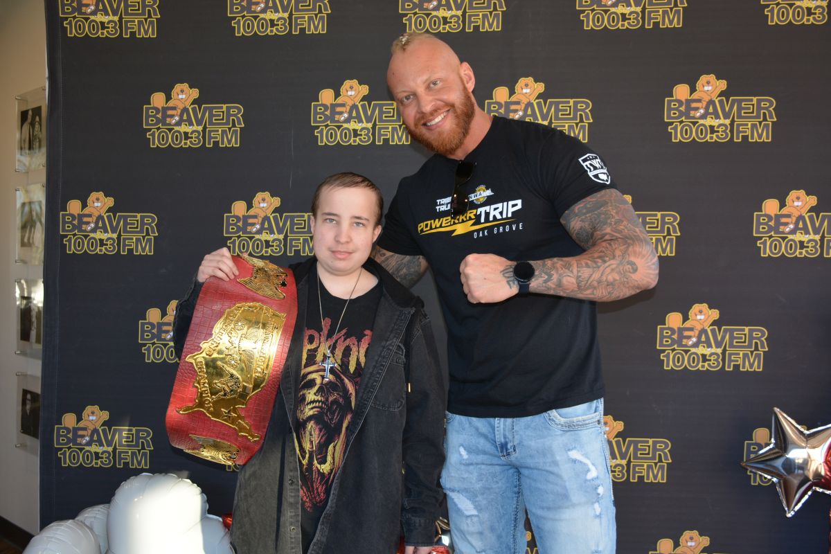 Crimson and Kane Reed pose at the Beaver 100.3 Camp Rainbow Radiothon, on Feb. 18 2022. (Lee Erwin).