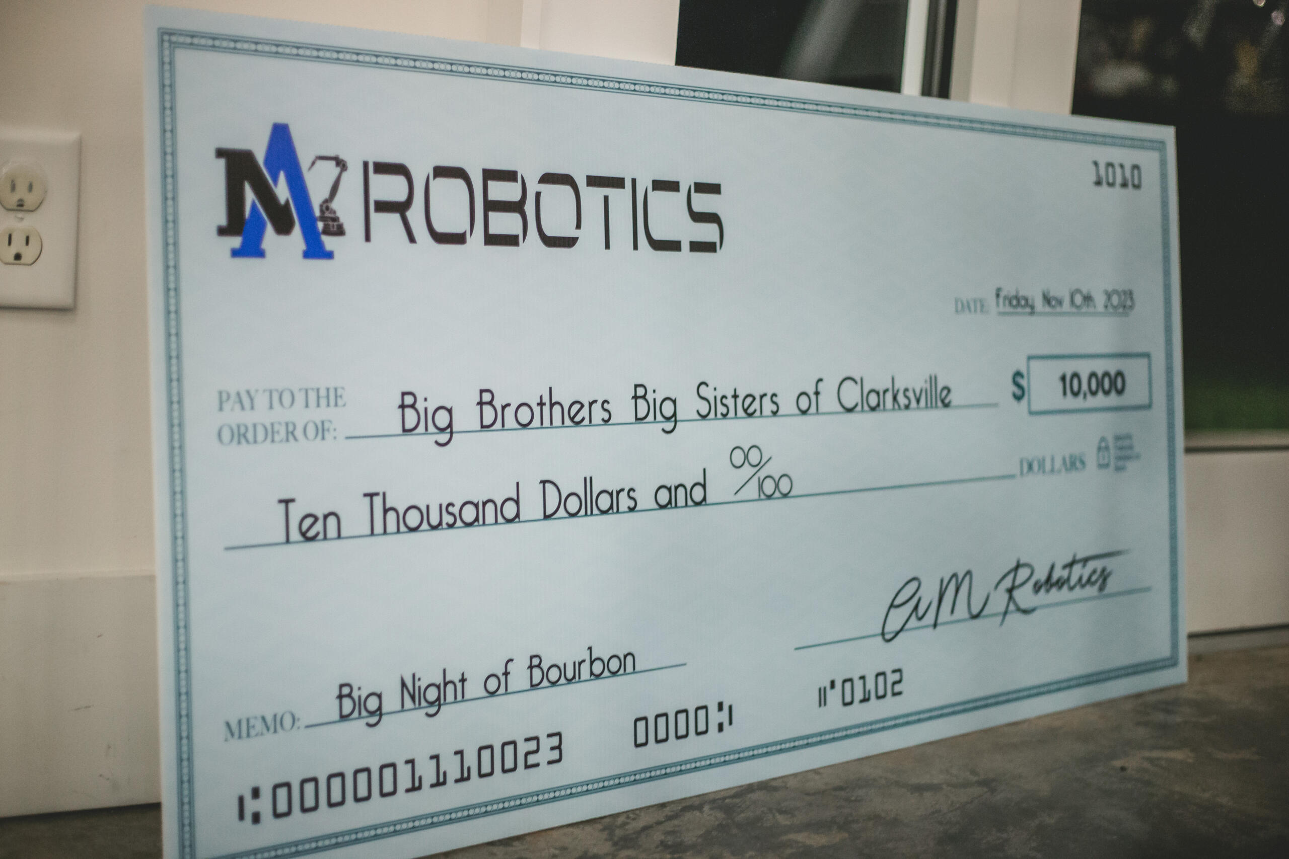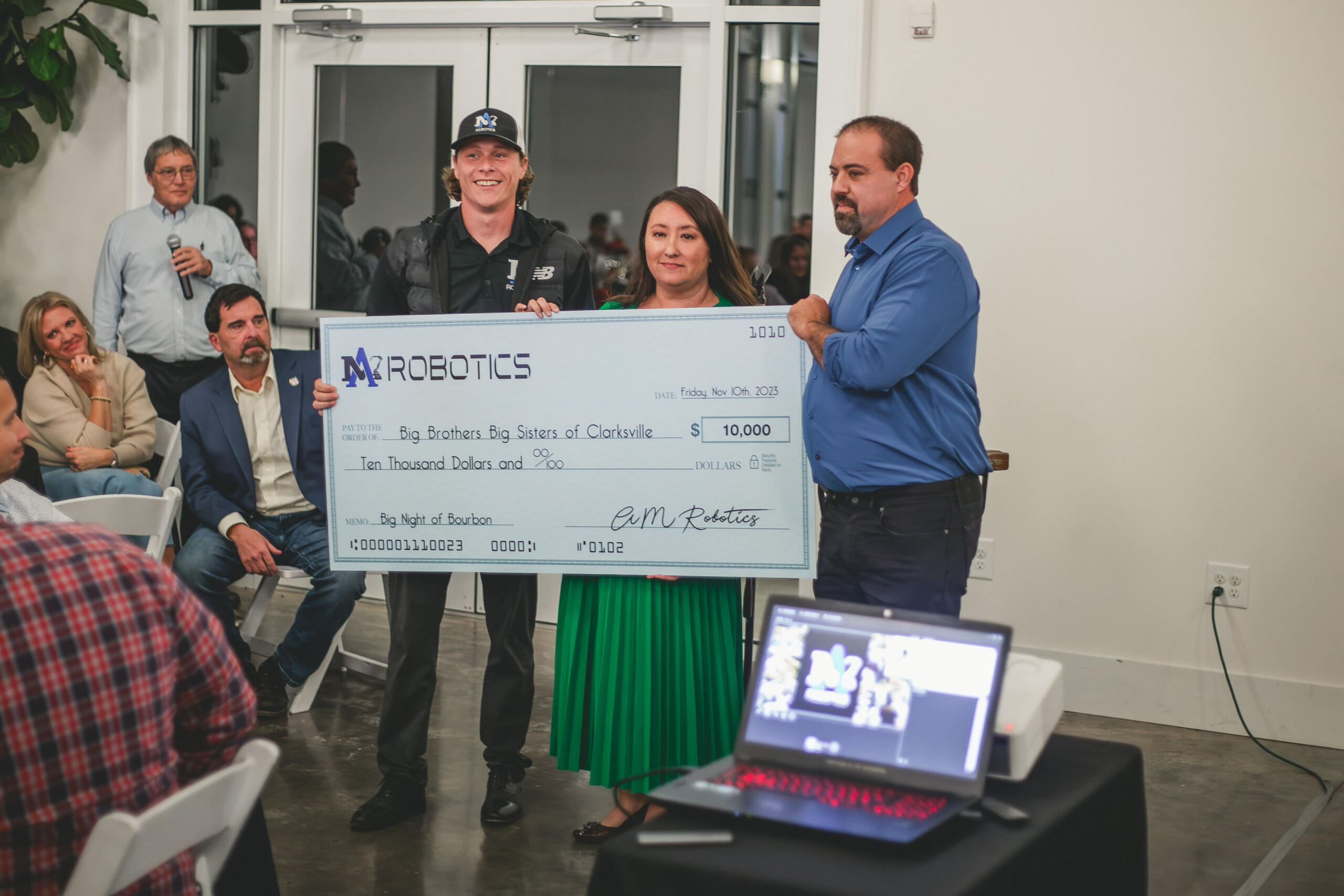 AM Robotics presents check to BBBSOC at the Big Brothers Big Sisters of Clarksville inaugural Big Night of Bourbon at the Ruby Cora on Nov 11, 2023. (Wesley Irvin)