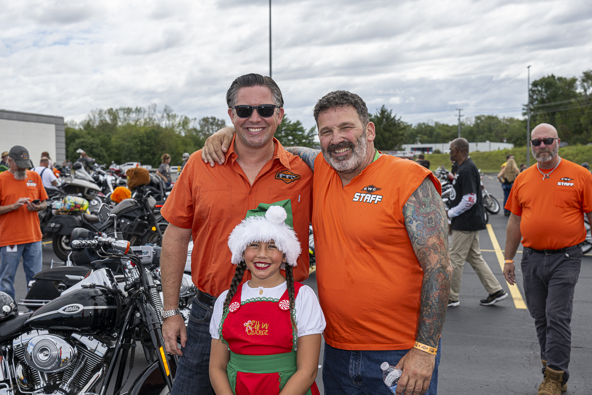 County Mayor Wes Golden, Mia Golden, and Paul Dominguez at the 43rd Annual Leslie W. Watson Memorial Toy Run. September 14, 2024. (Jeff Danault)