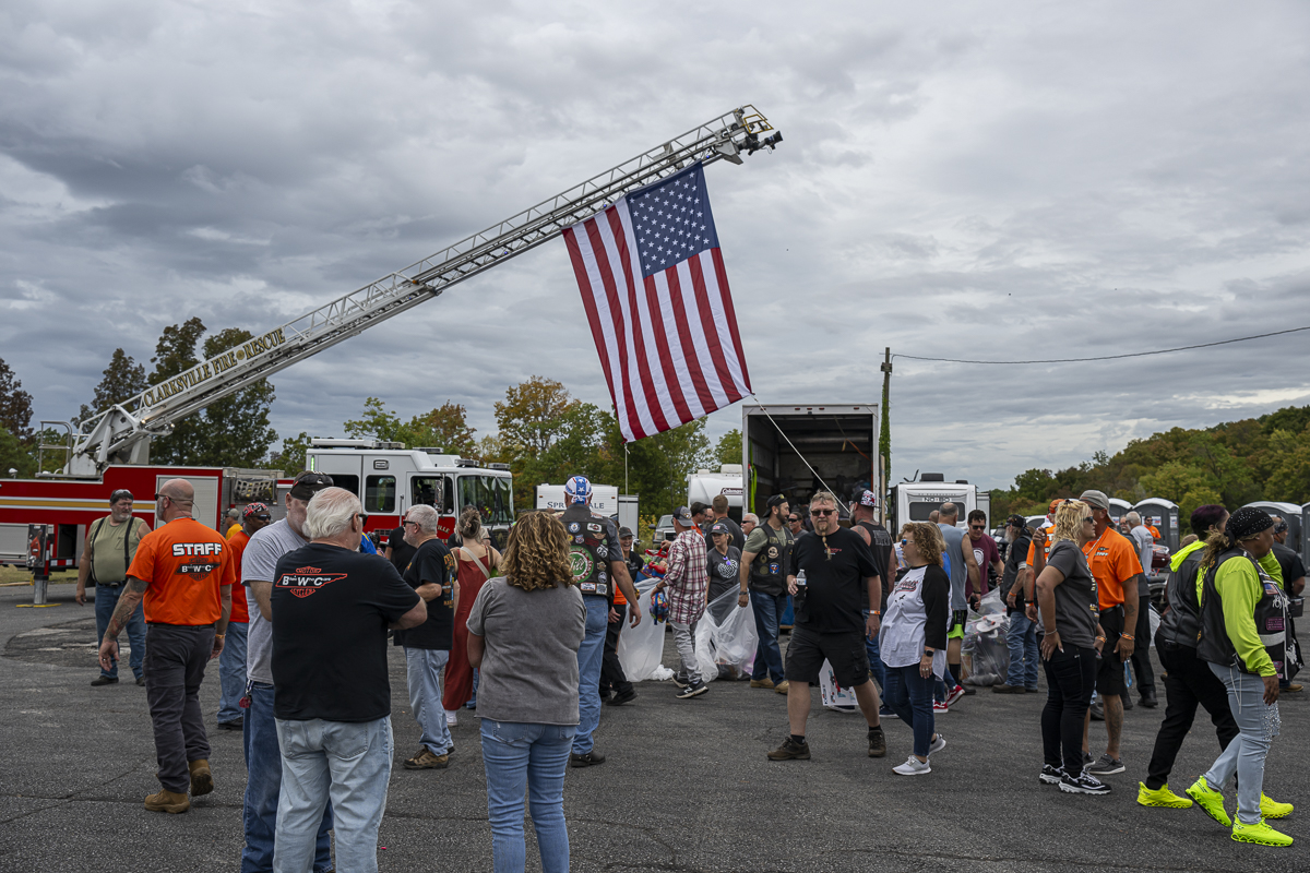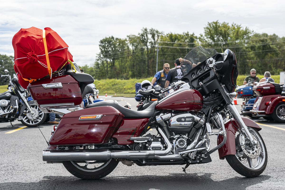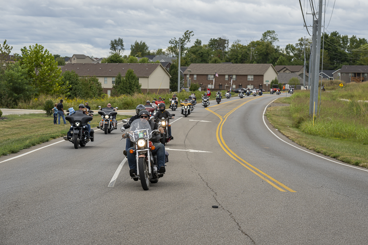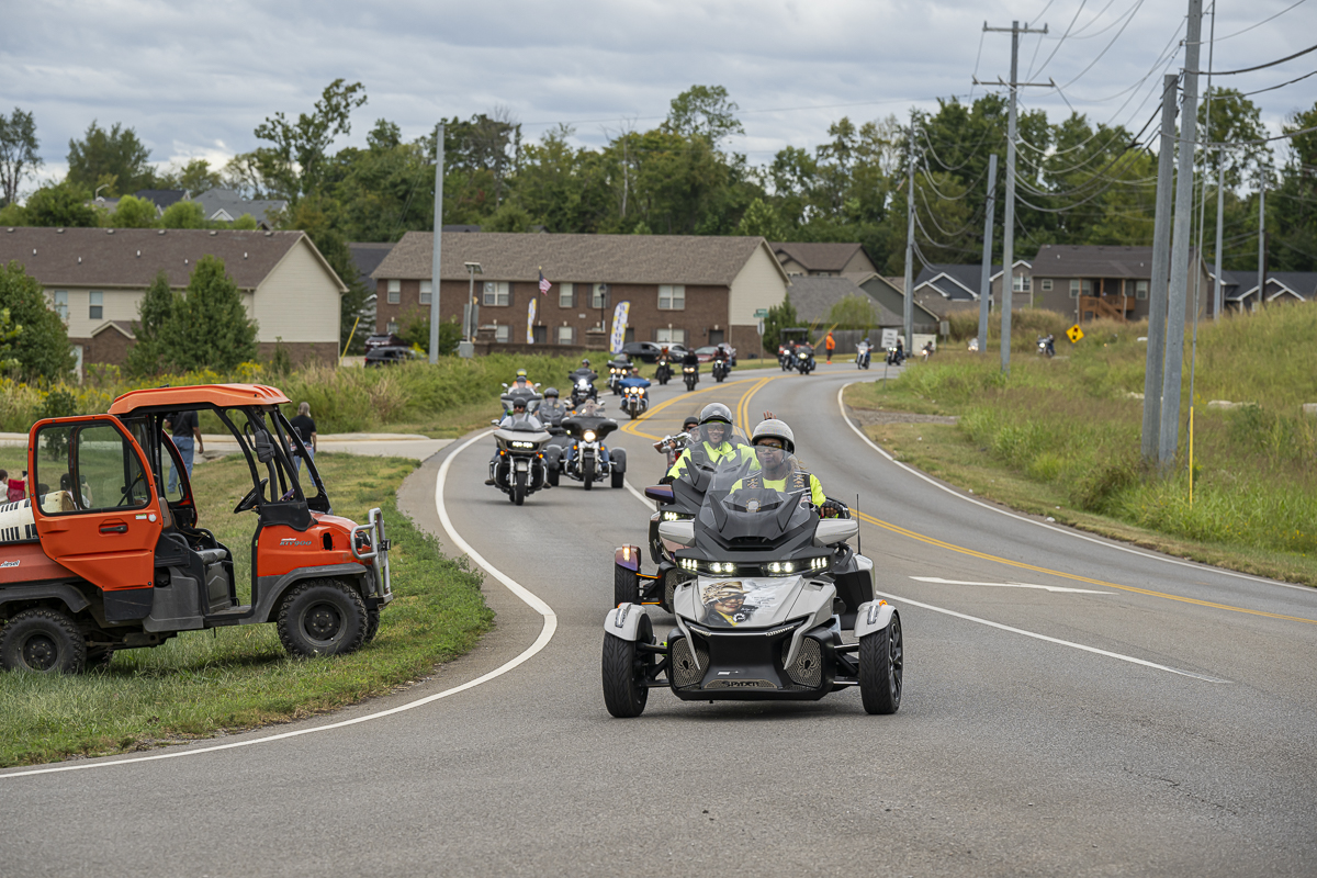 The Lead Bike comes in at the 43rd Annual Leslie W. Watson Memorial Toy Run. September 14, 2024. (Jeff Danault)